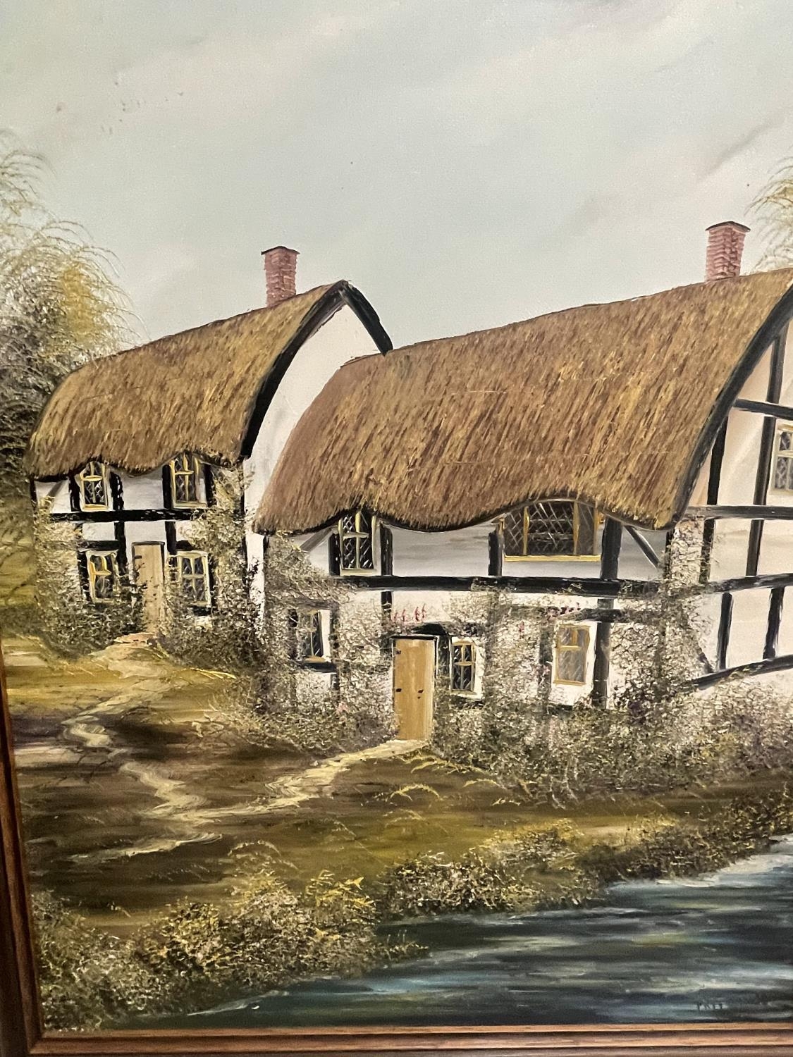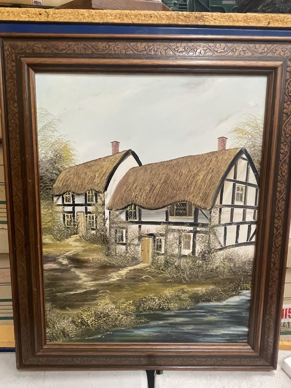 A FRAMED OIL ON CANVAS OF A COUNTRY COTTAGE SIGNED PR FREEMAN