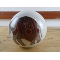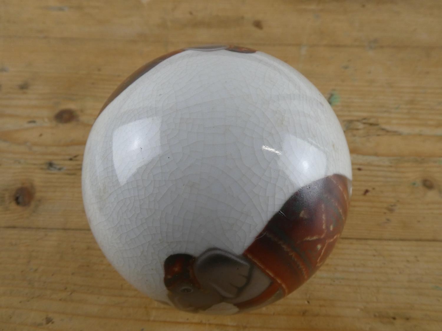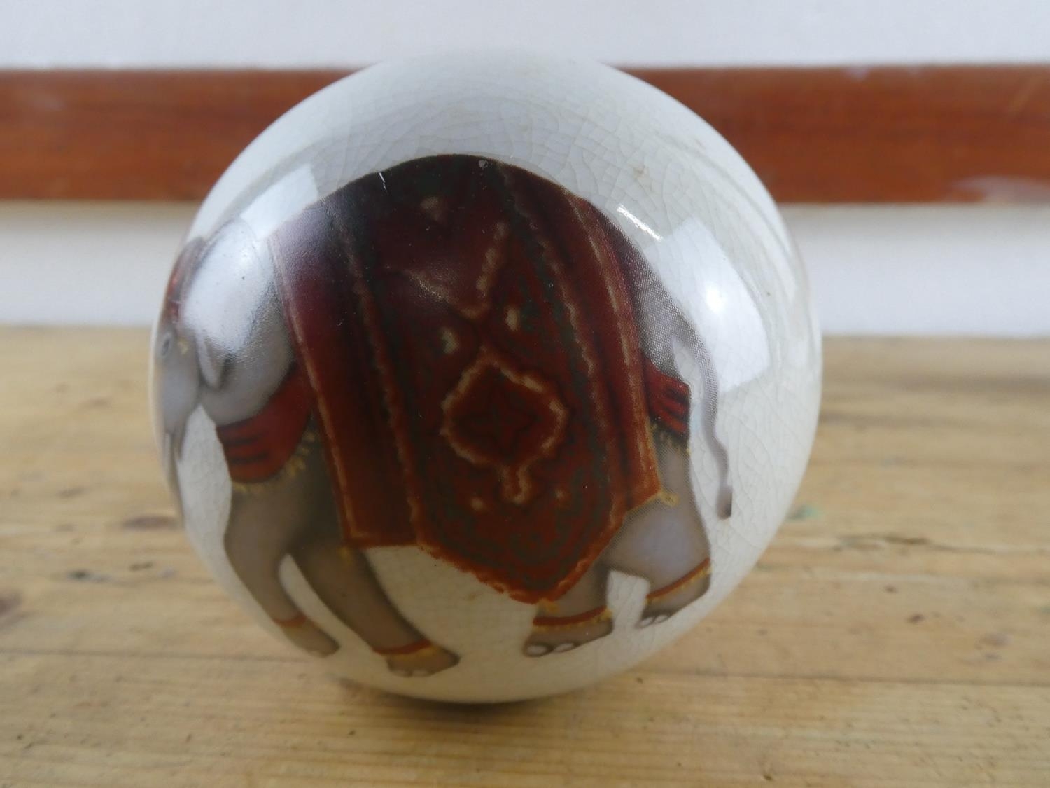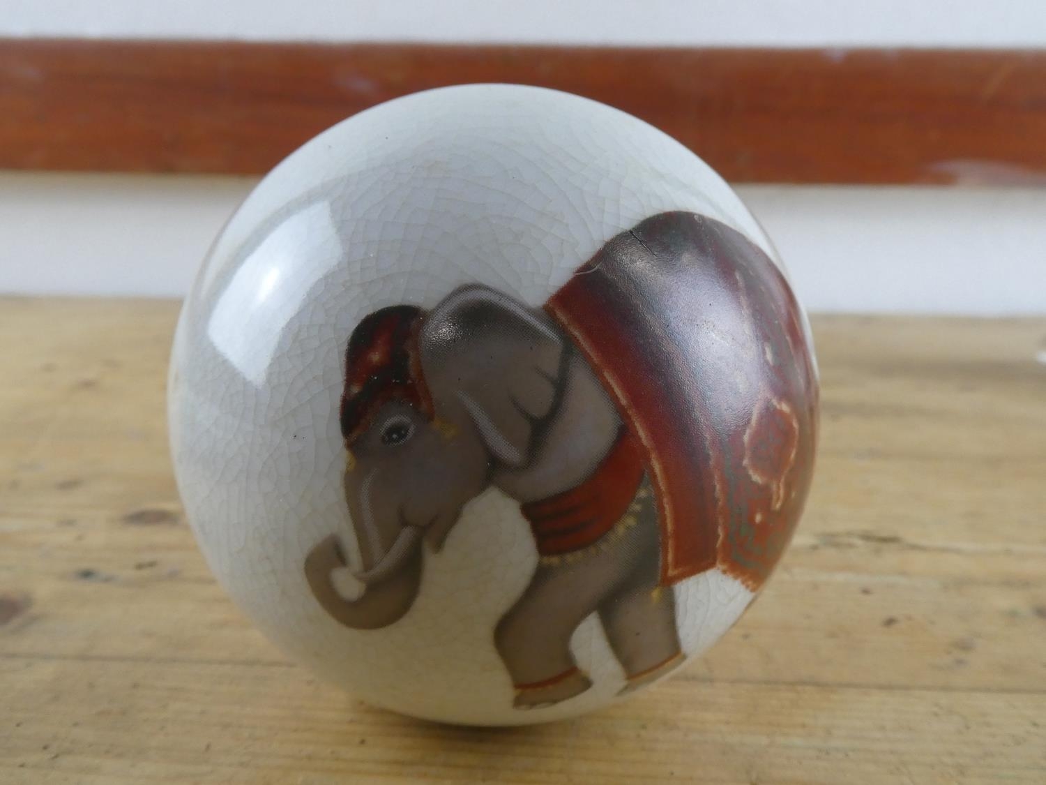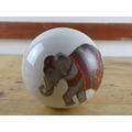 A ceramic ball with elephant design.