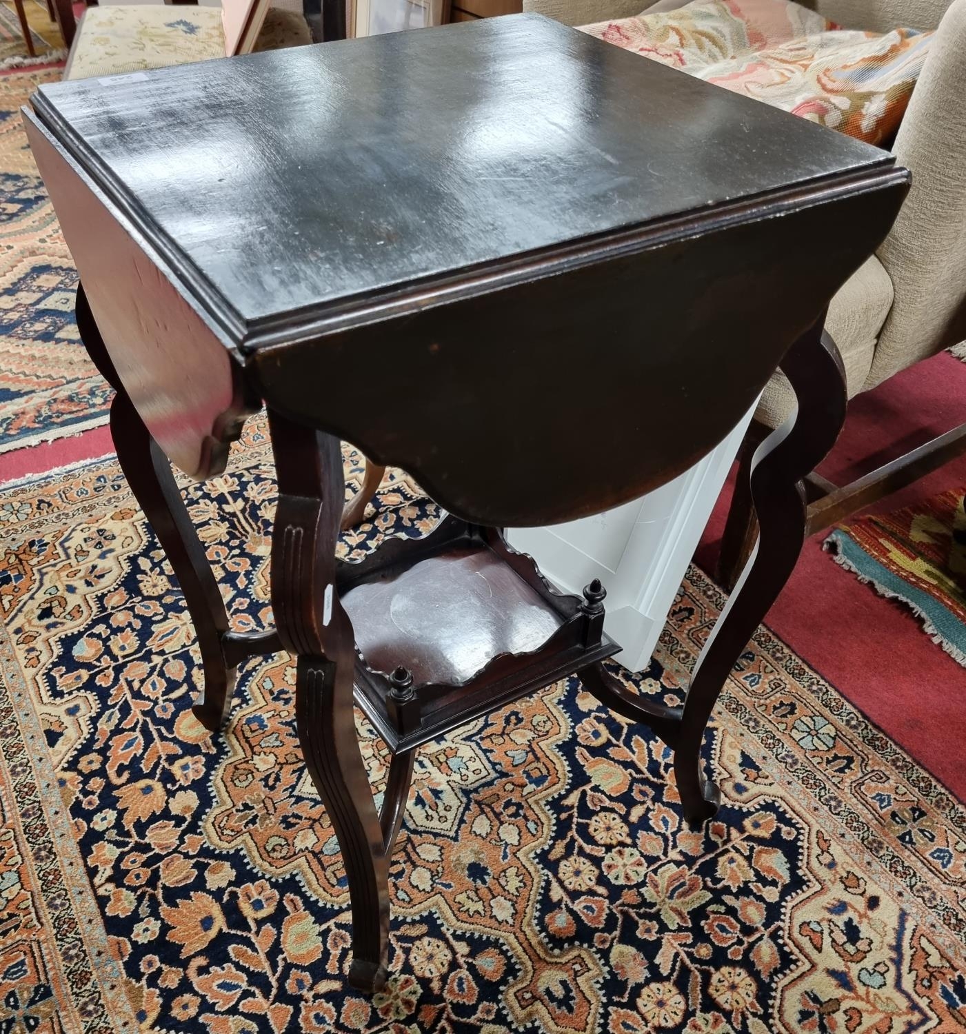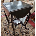 An early 20th Century drop leaf games Table. 44 x 46 cm approx. dropped. 76 x 76cm approx. up.