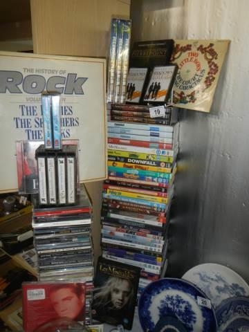 A quantity of CD's, DVD's and cassette tapes.