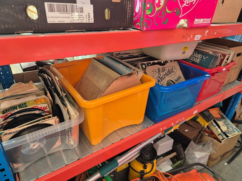 6 boxes of records etc - LPs, CDs, music cassettes, vhs cassettes