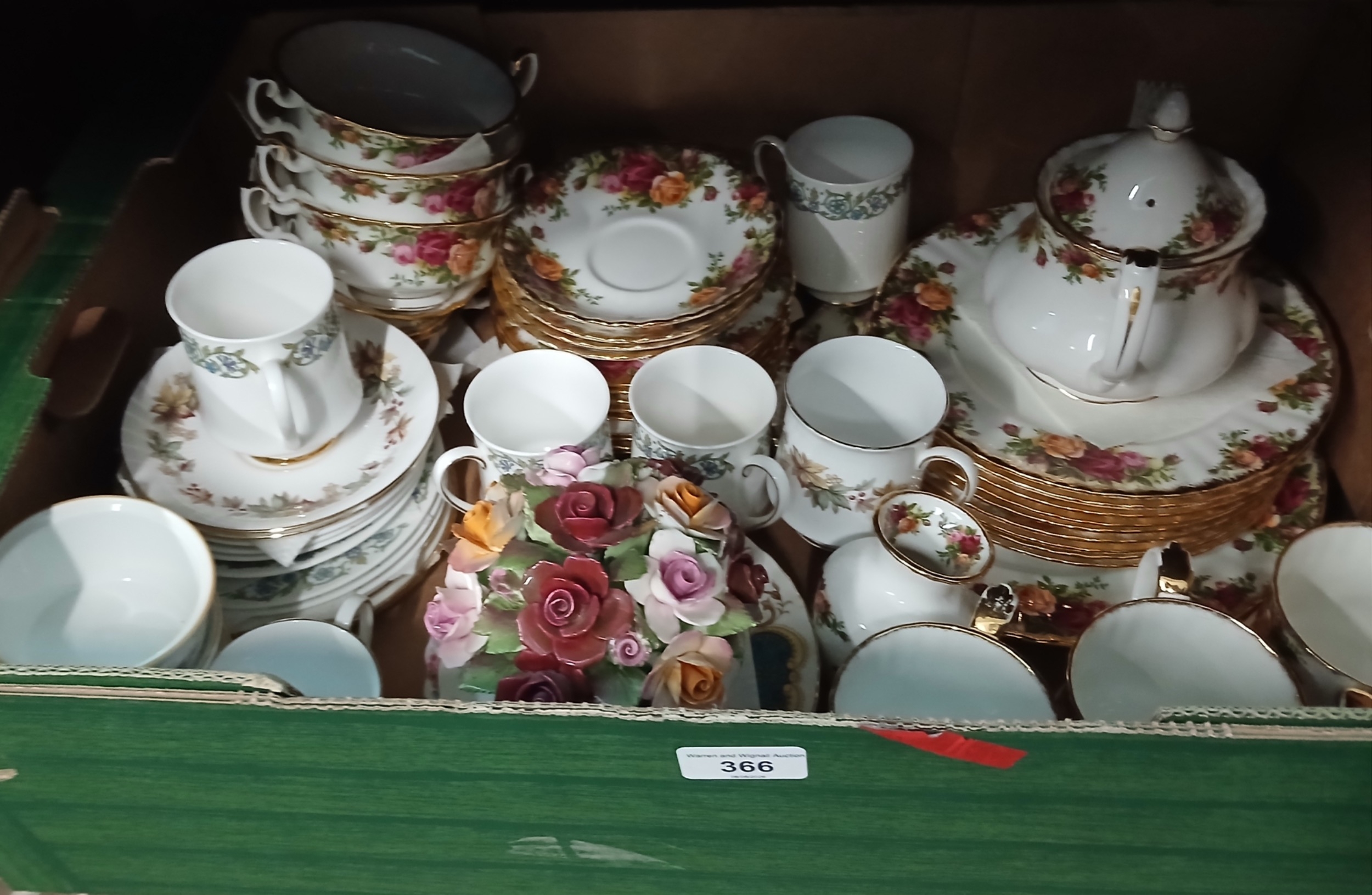 A box containing Royal Albert Old Country Roses & others.