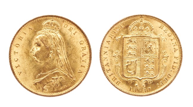 A VICTORIAN HALF SOVEREIGN,1887