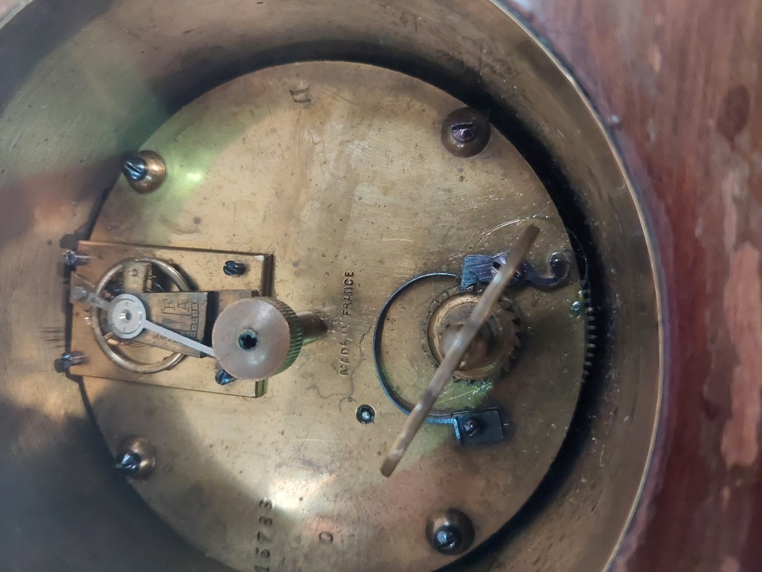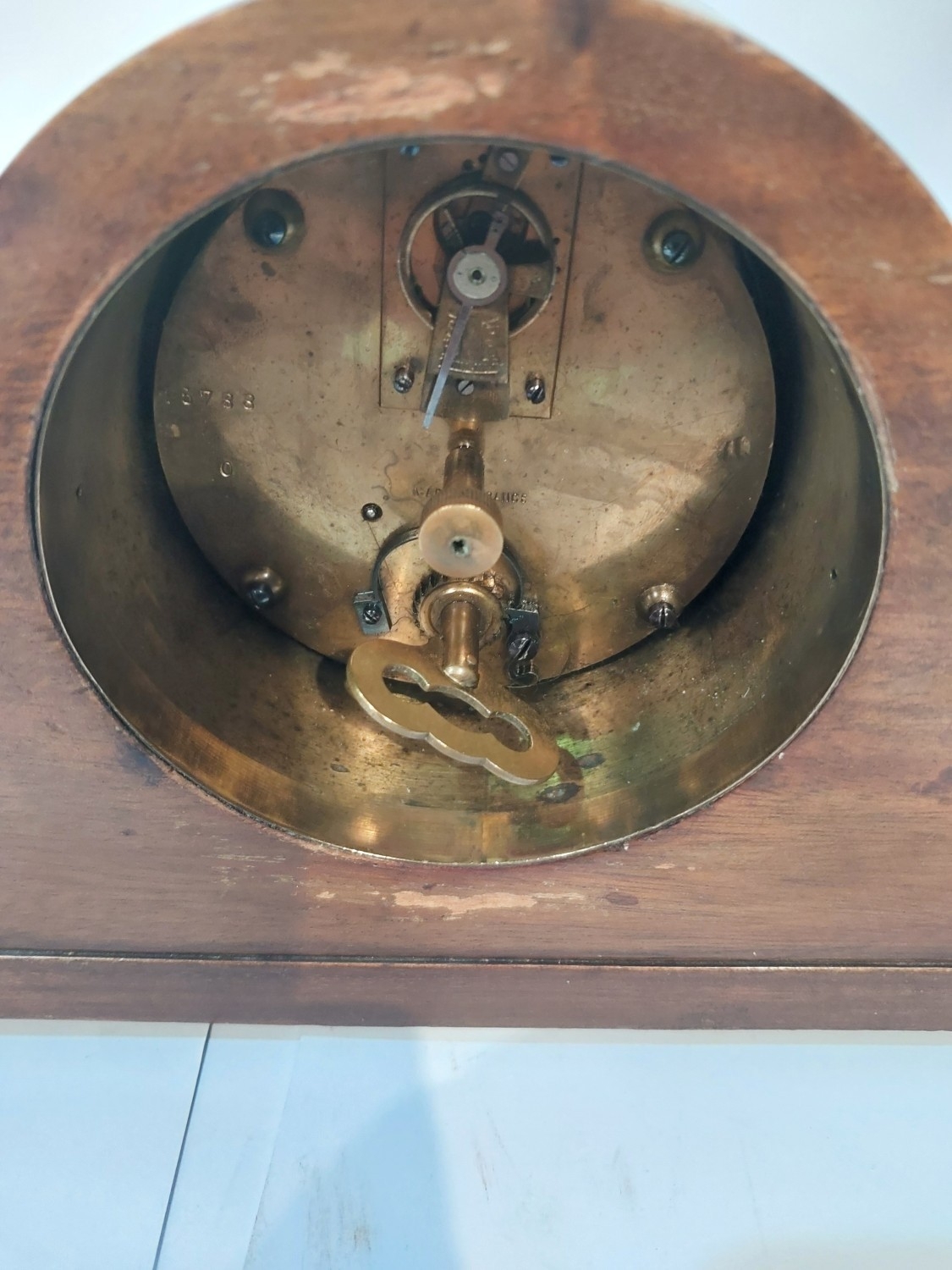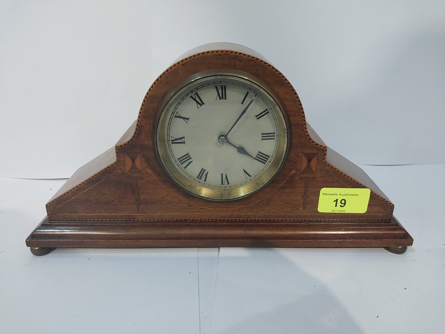 Edwardian mantle clock with inlaid decoration.No bids sold with next lot