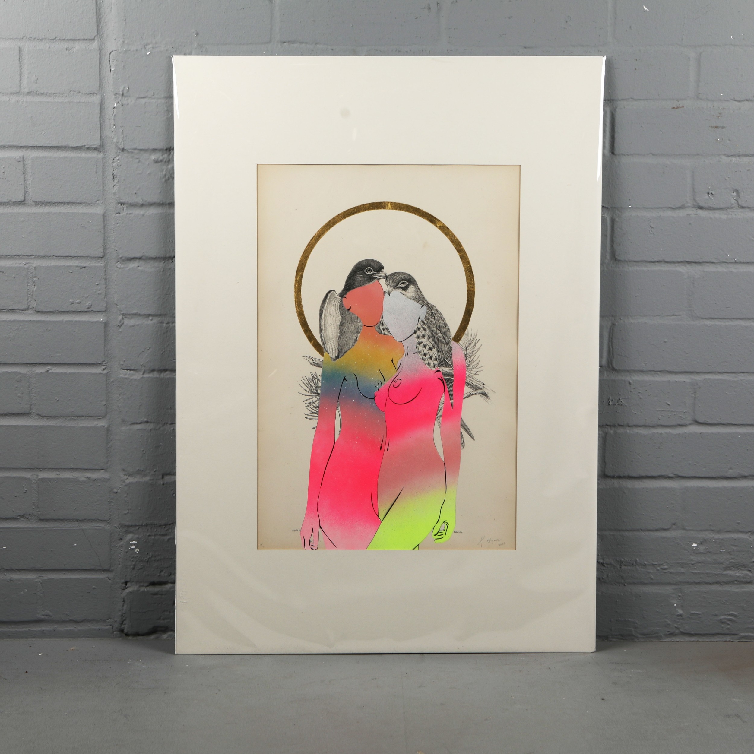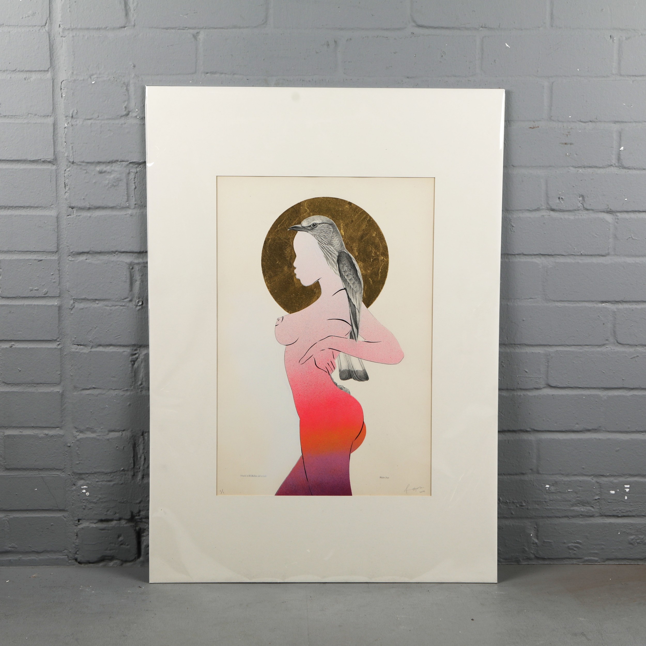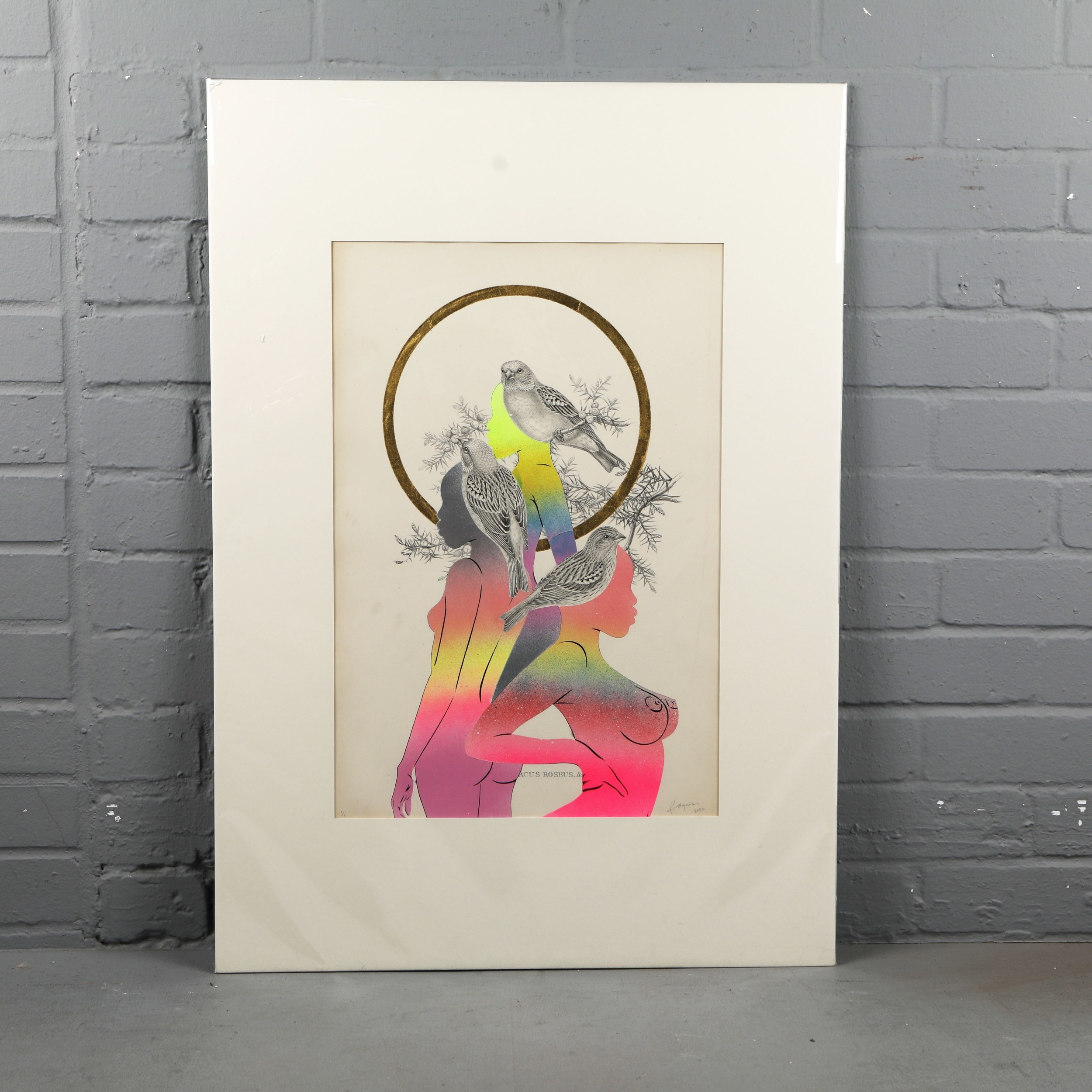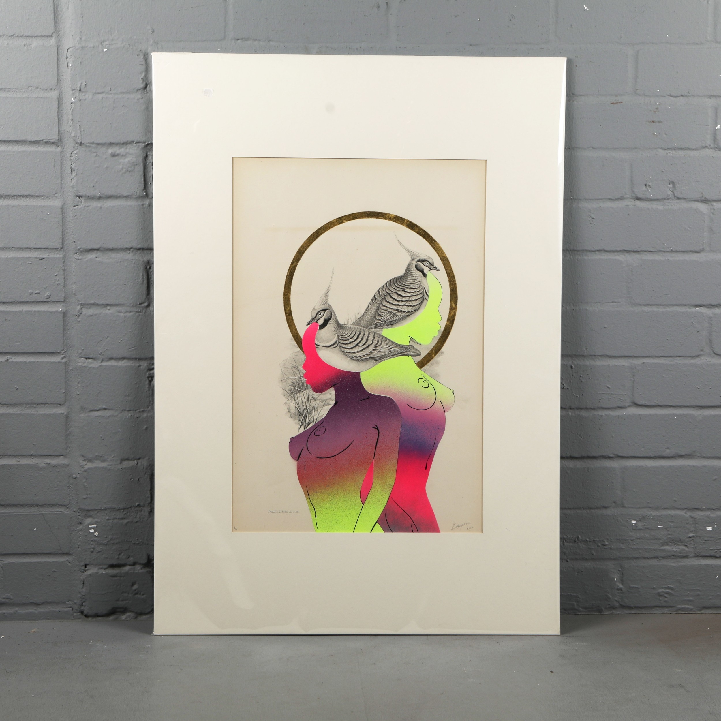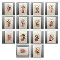 RUGMAN. JOHN GOULD ANTIQUARIAN PRINTS (14). Original lithographs by Gould with enamel, spray paint & 24 carat gold leaf by Rugman, signed by the artist, in collaboration with Sotheran's, each 84cm x 60cm, unframed.