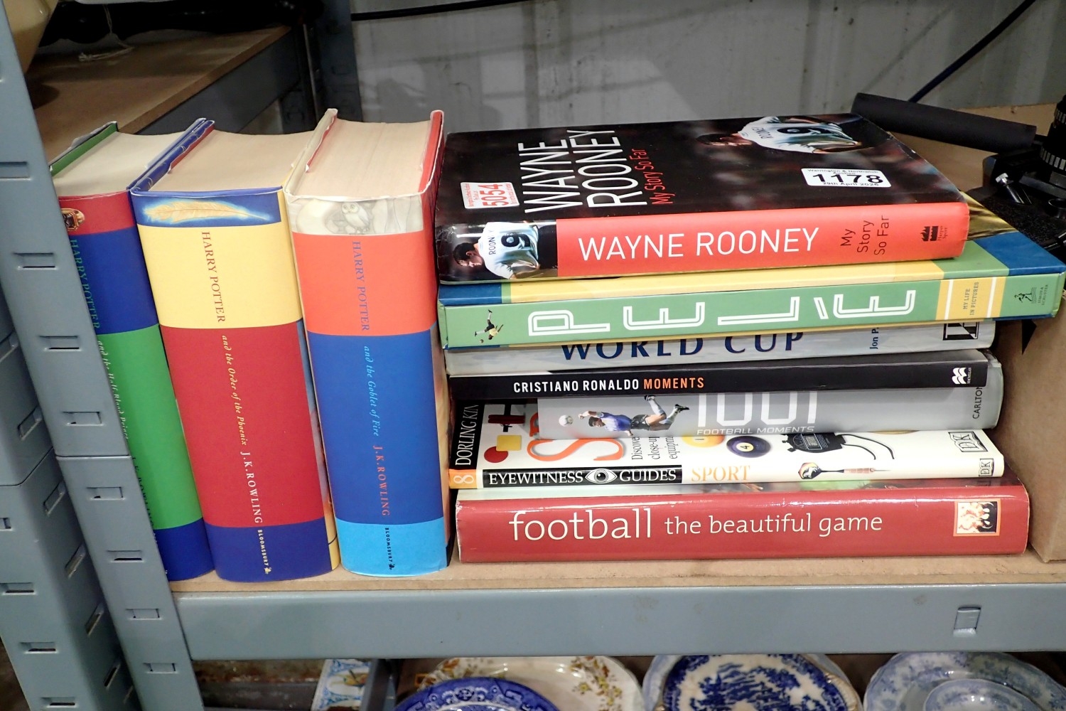 Three Harry Potter books and a selection of football books. Not available for in-house P&P