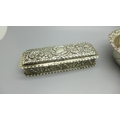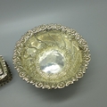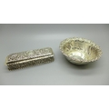 An embossed silver box, Birmingham 1900, 89g, width 13.5cm, and a silver bowl, 76g