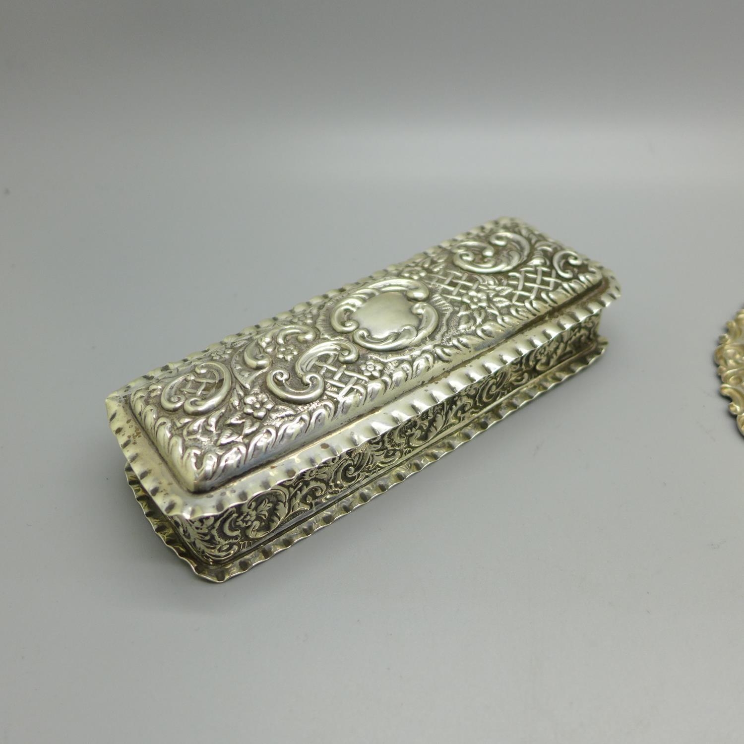 An embossed silver box, Birmingham 1900, 89g, width 13.5cm, ...