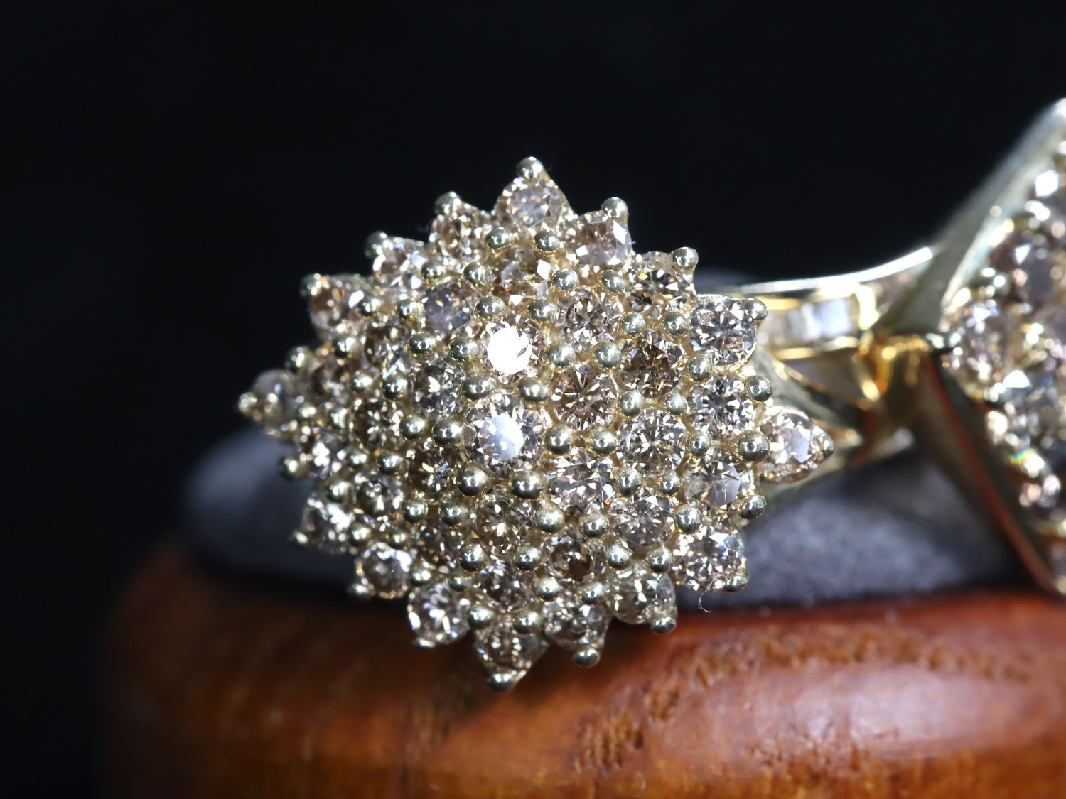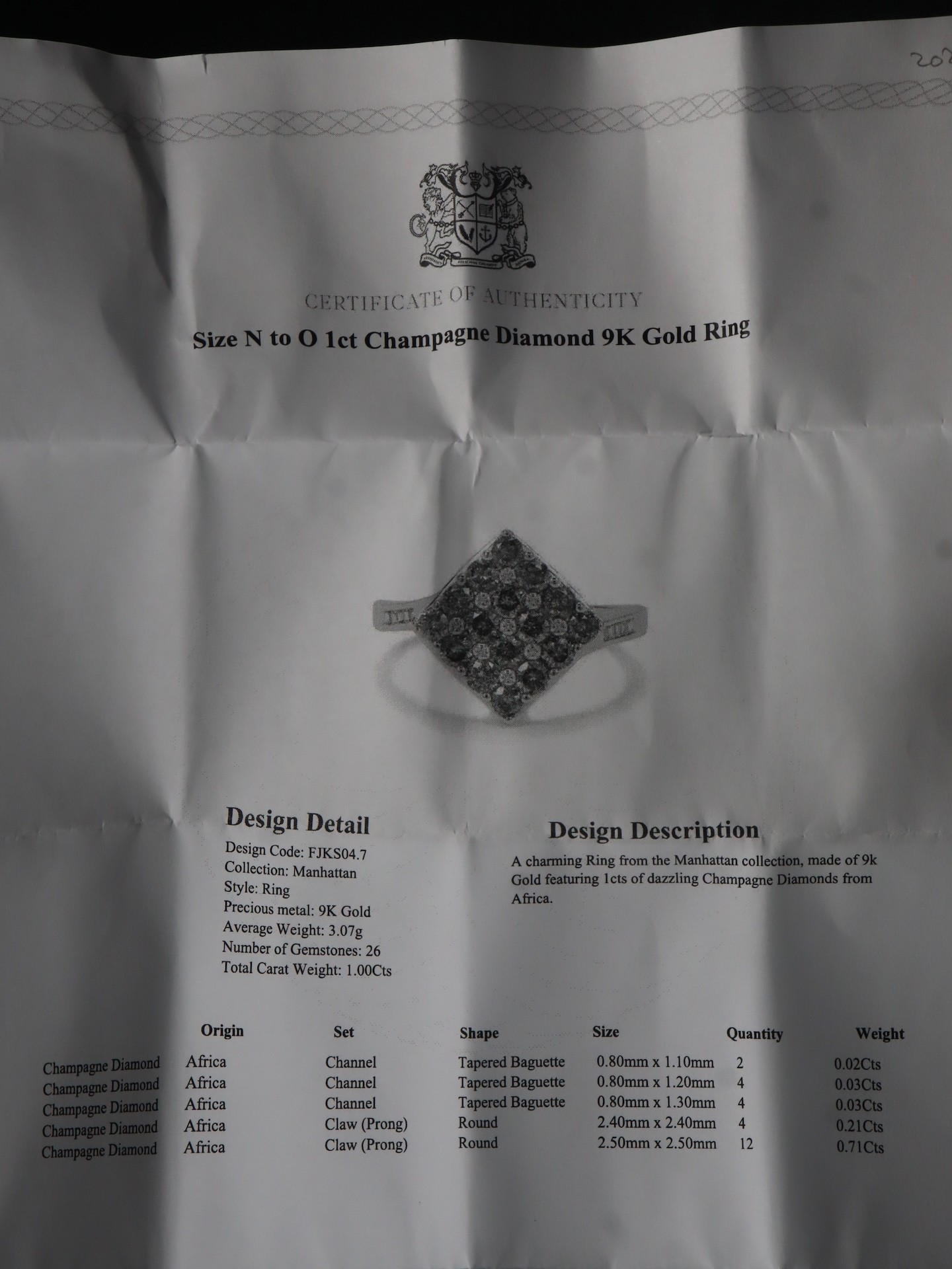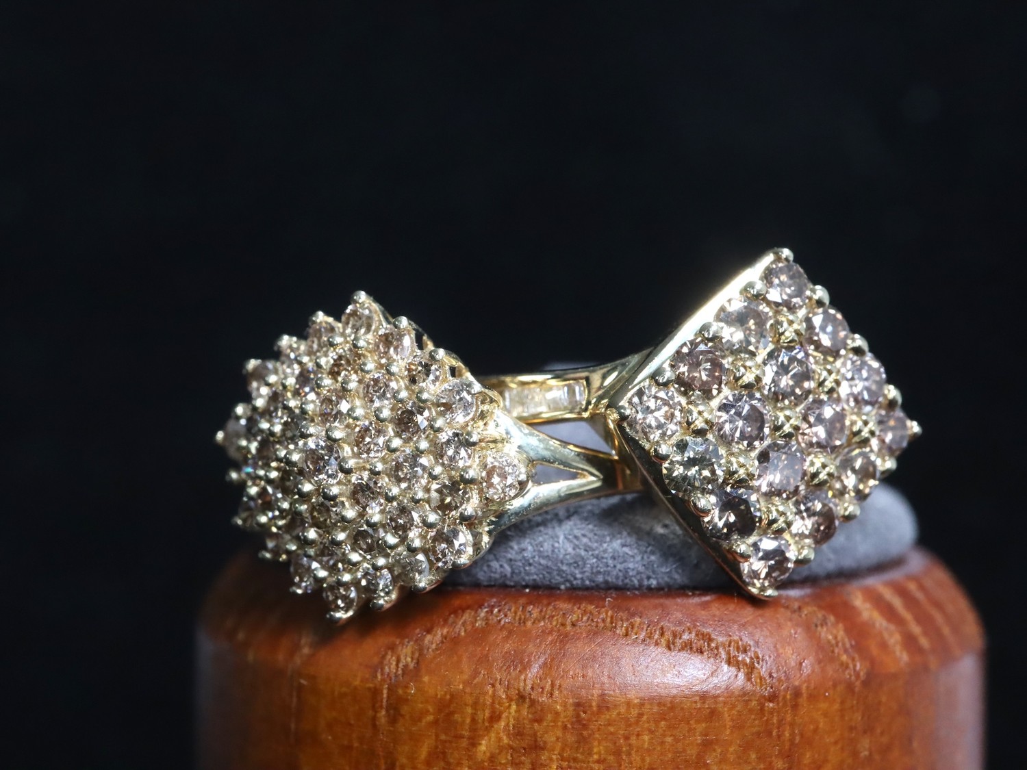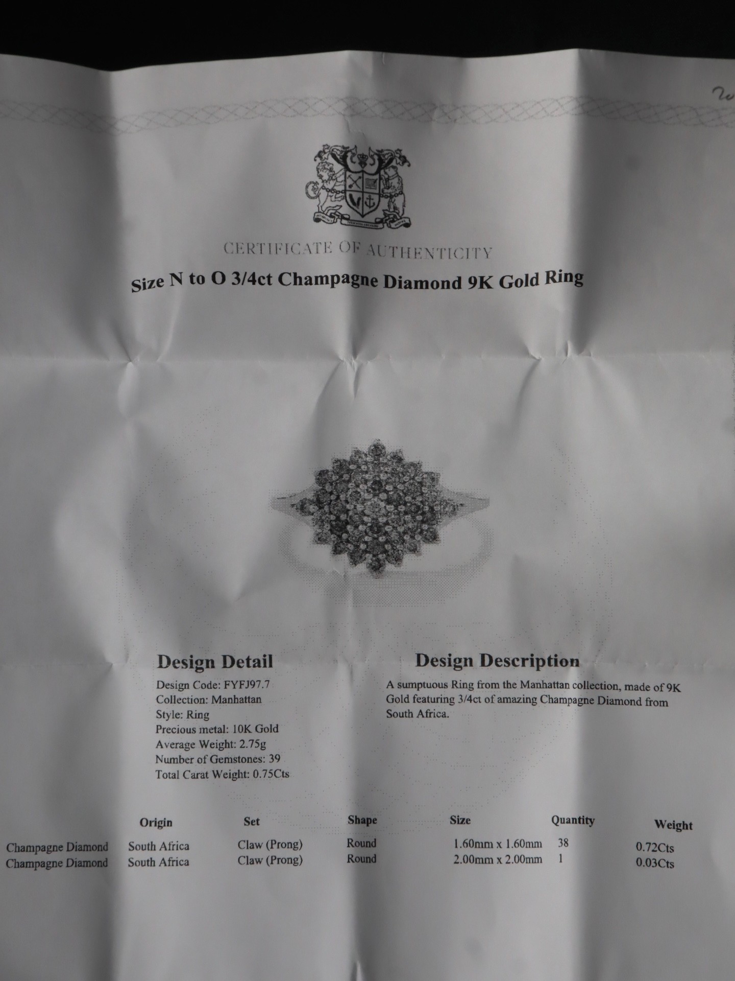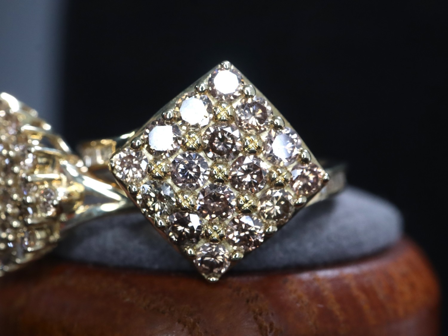 3/4ct Champagne Diamond 9k Gold Ring Size N-O & 1ct Champagne Diamond 9k Gold Ring Size N-O with COA - 6g