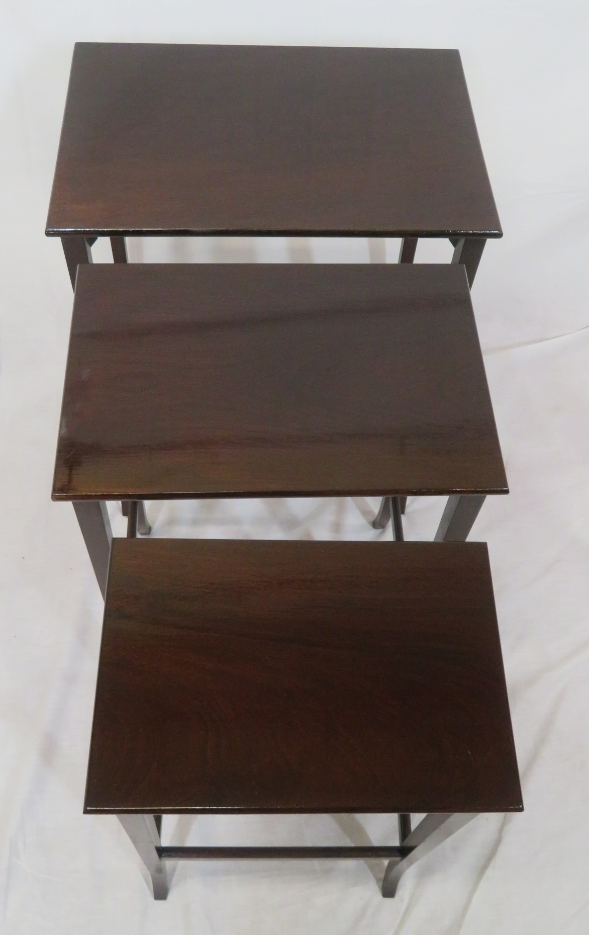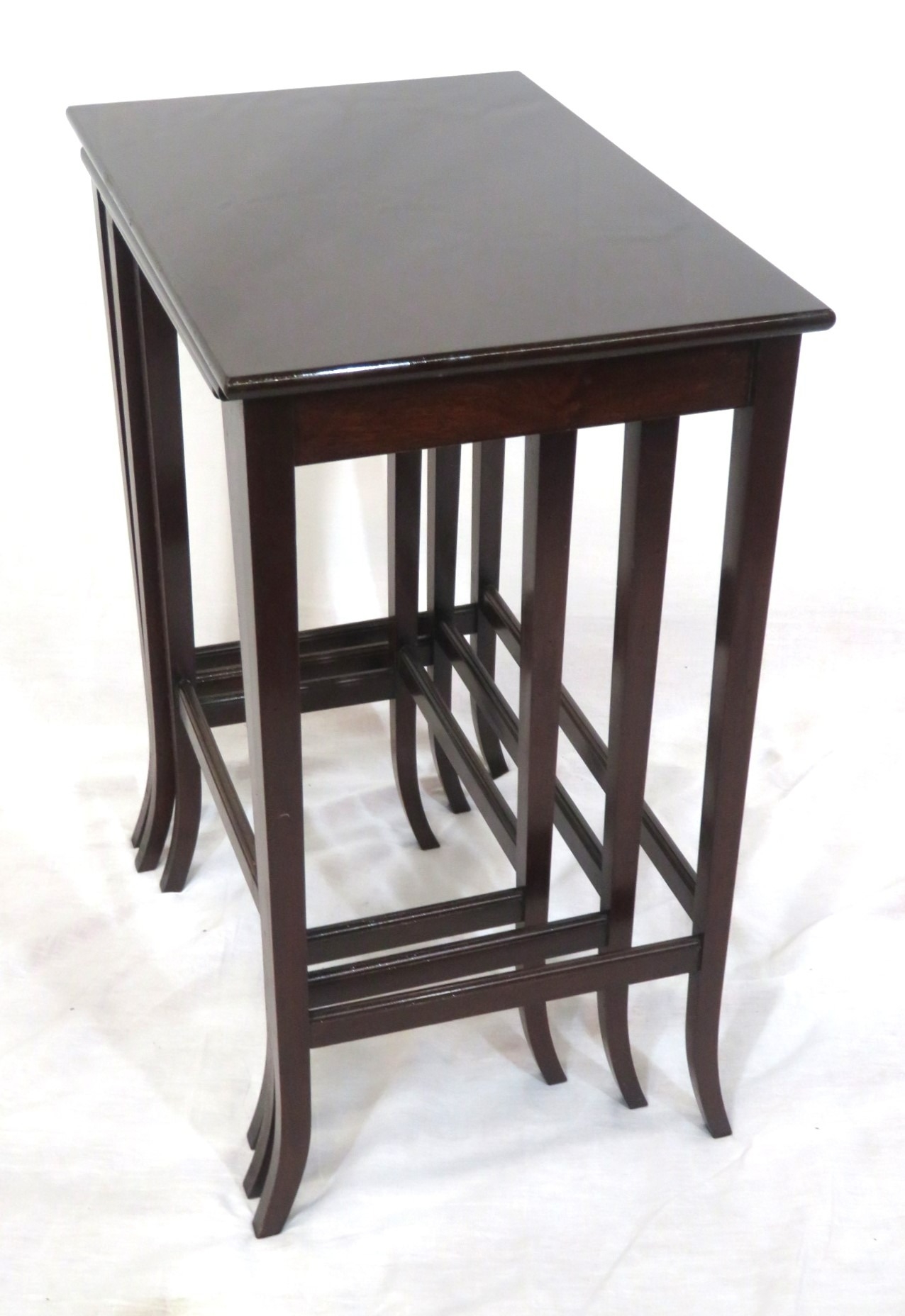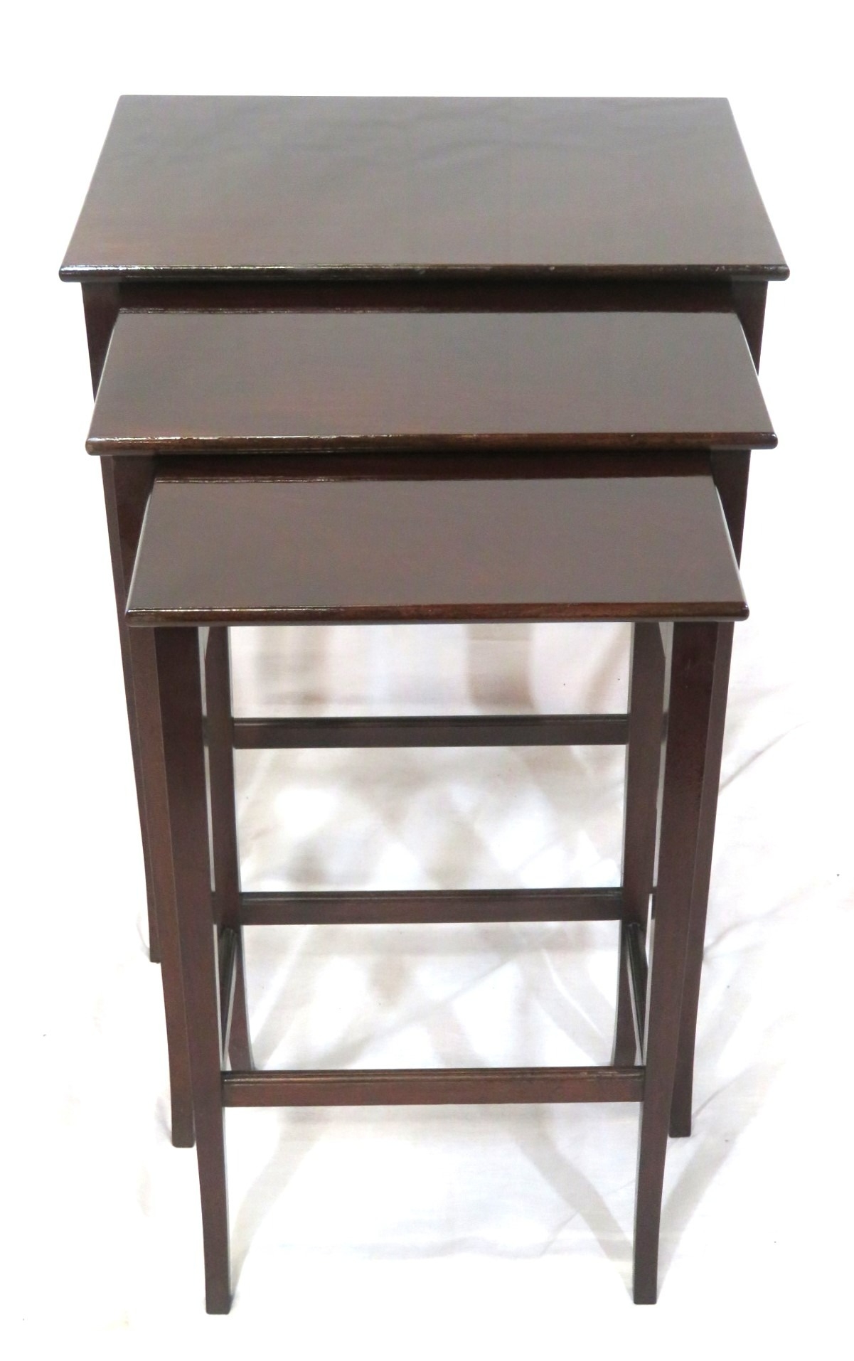 Nest of 3 mahogany occasional tables with square tapering & shaped legs & stretchers