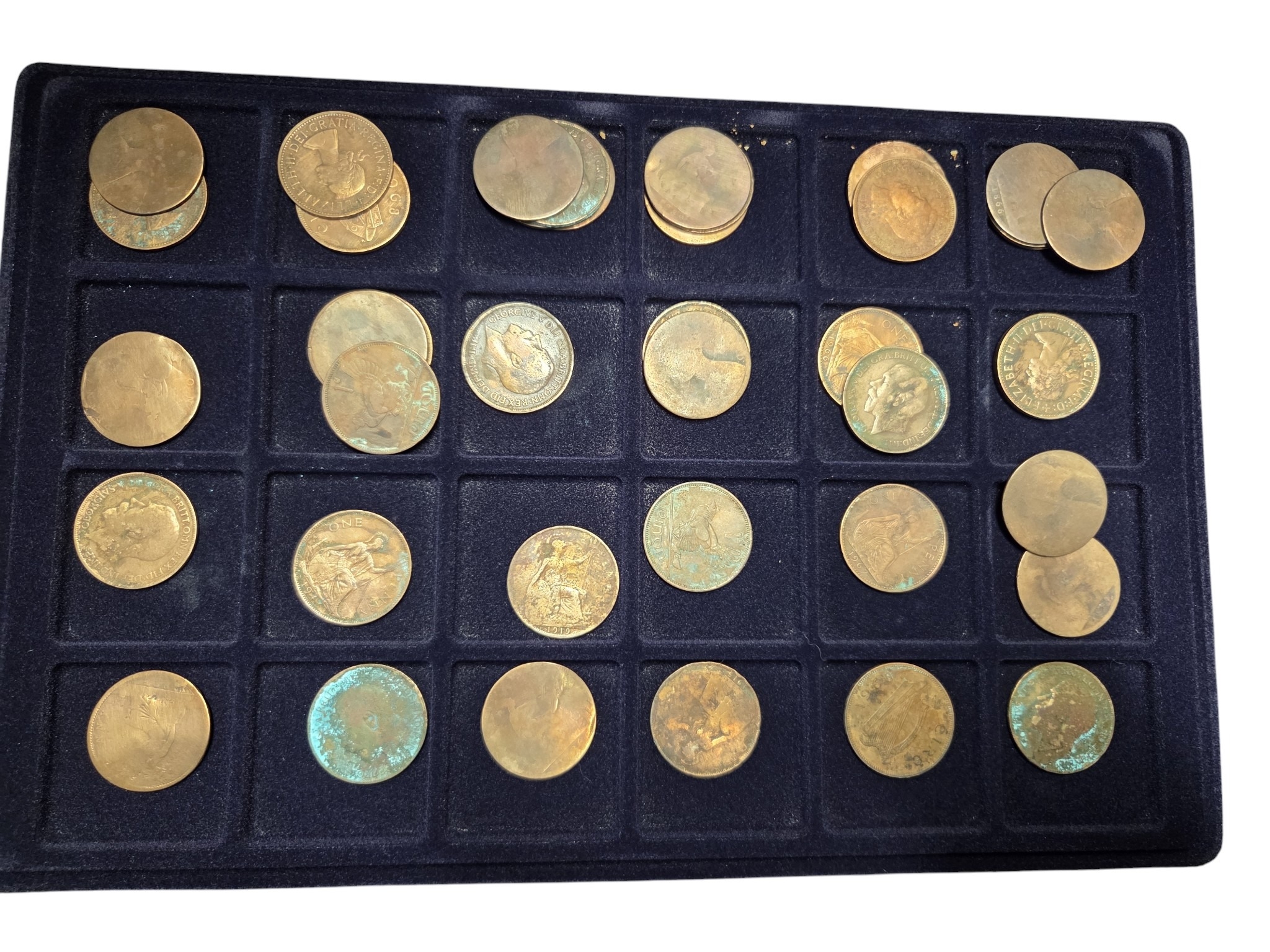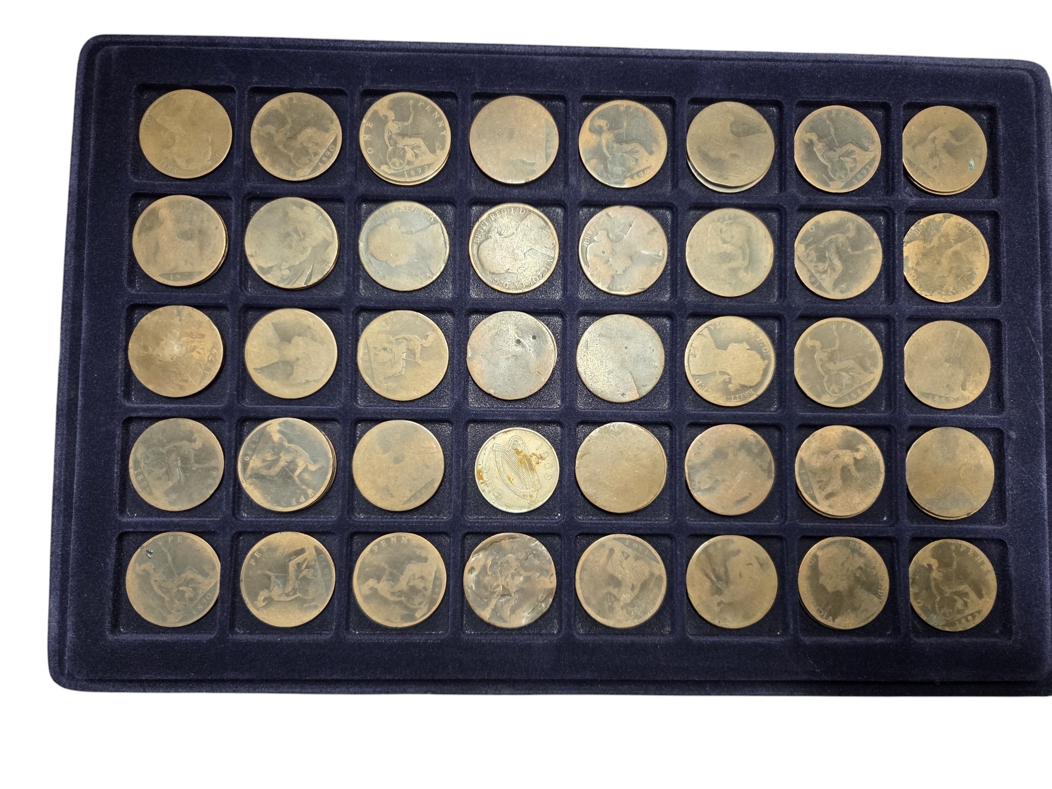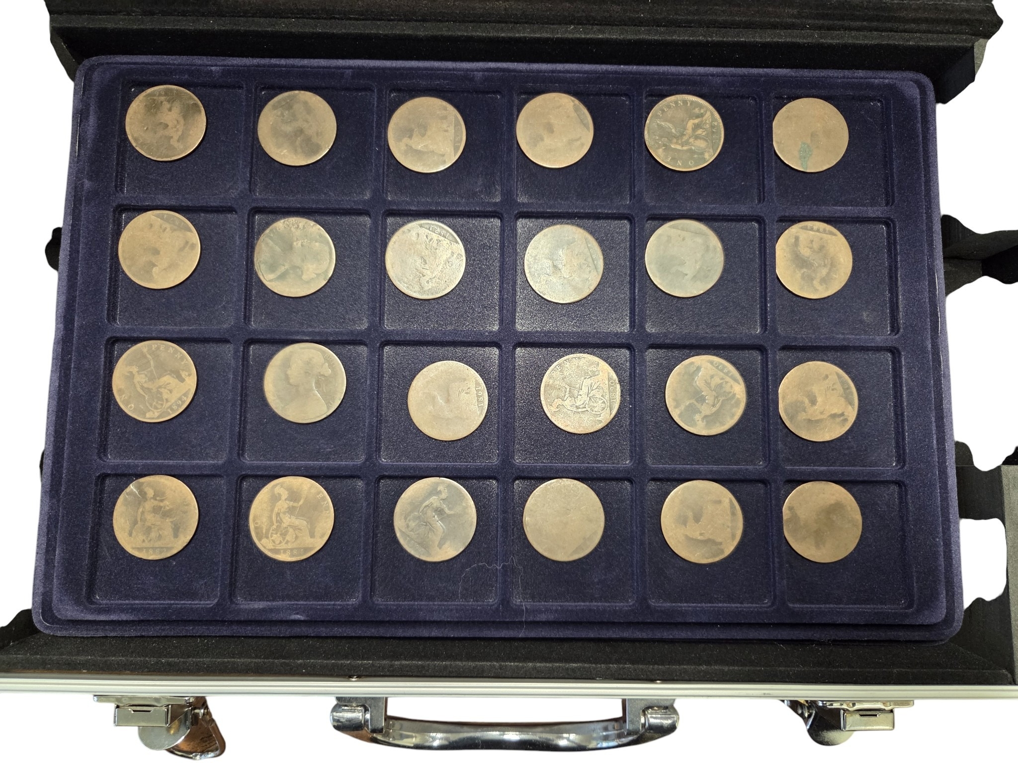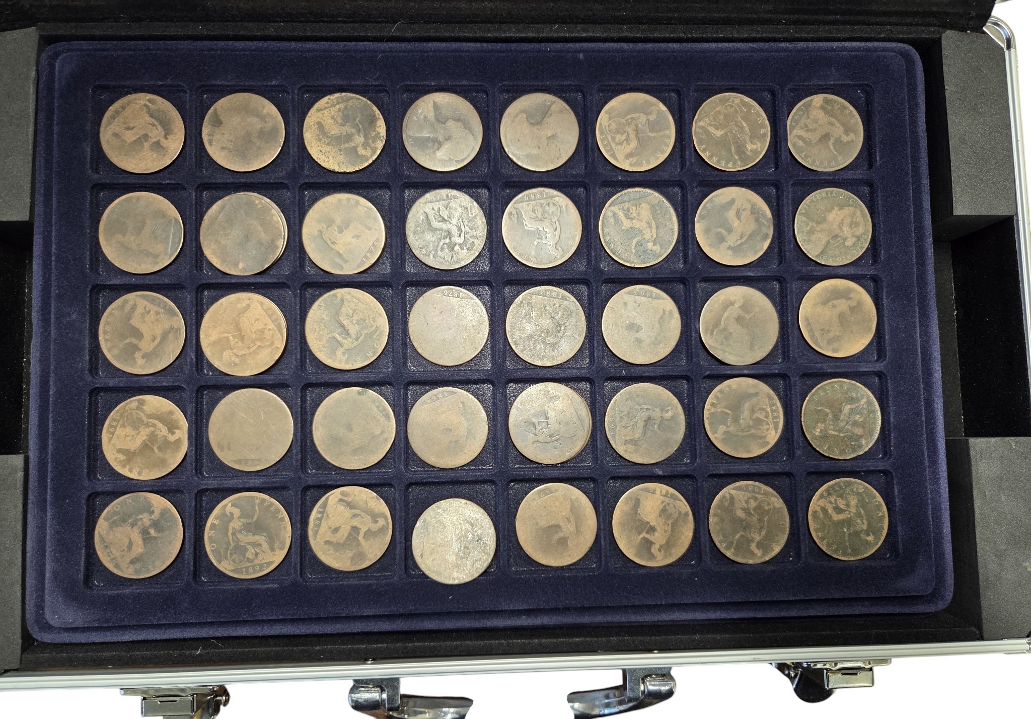 An extremely large quantity of primarily British Pennies some Irish. In a metal coin case.