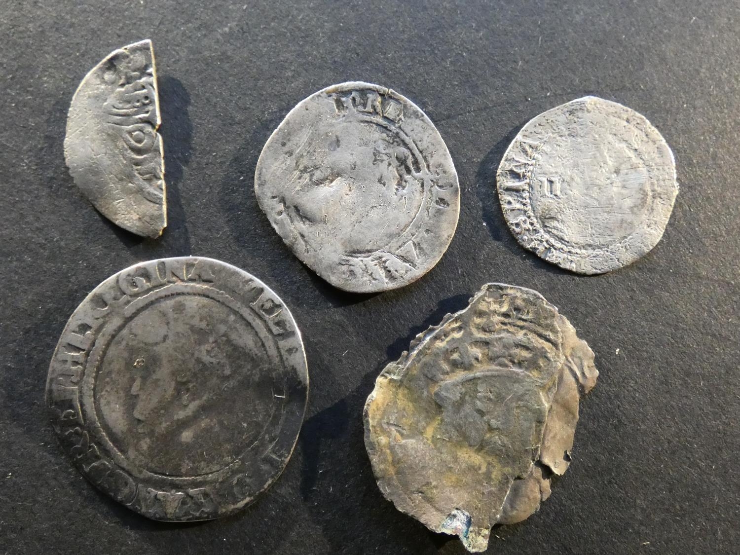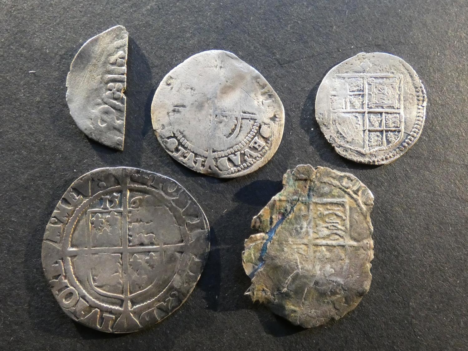 ENGLAND. Various, including Henry VIII, silver Groat, posthumous issue, badly chipped. Elizabeth I, Threepence & Sixpence, James I first coinage, ½-Groat, mintmark lis, S-2649, and cut Halfpenny short cross, possibly of Richard I. Mixed grades and condition, Good to VG, faults, corrosion, scratches, etc. (5)