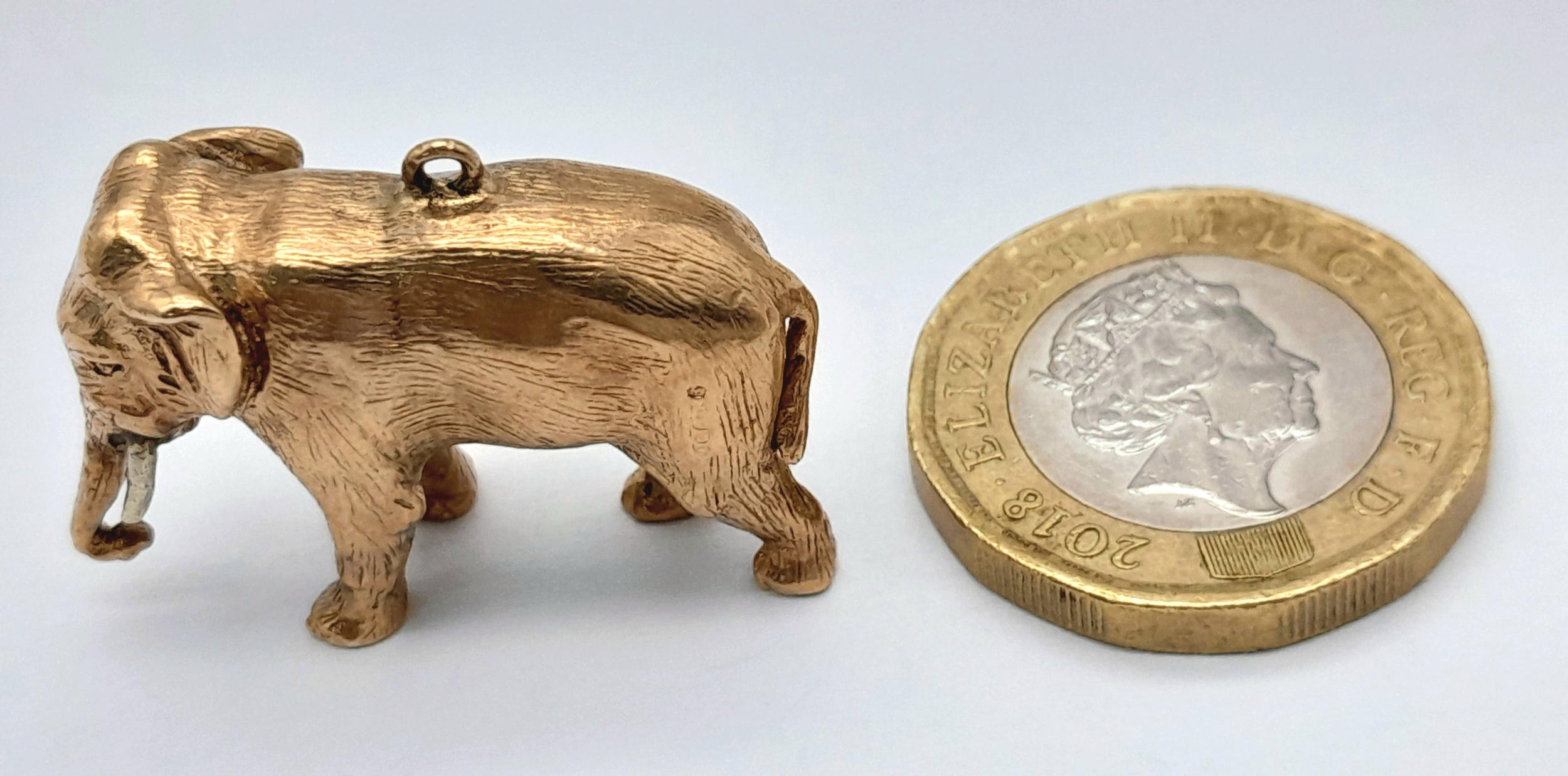 A Beautiful 9K Yellow Gold Elephant Pendant/Charm. 3cm. 12.1g.