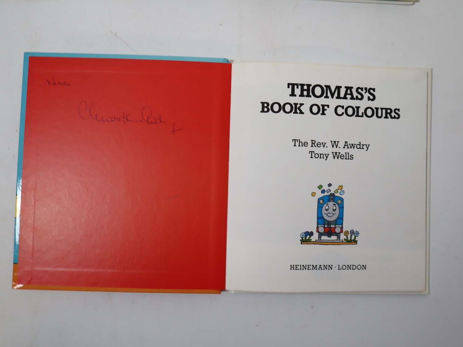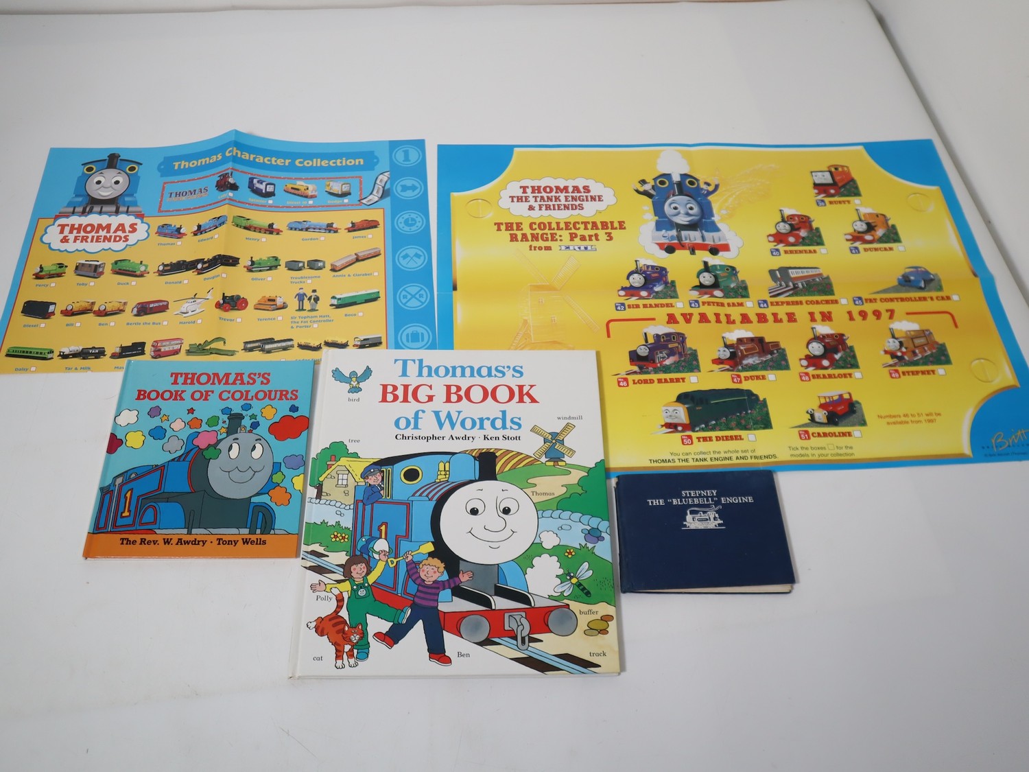 Original Rev Audrey book ( early 1960’s) “Bluebell” which preceded and led to the television series that went global, Thomas Big book of Words & Thomas Book of Colours Signed both signed by Christopher Awdry, Original Rev Audrey book ( early 1960’s) “Bluebell” which preceded and led to the television series that went global + Two Ertl model Posters