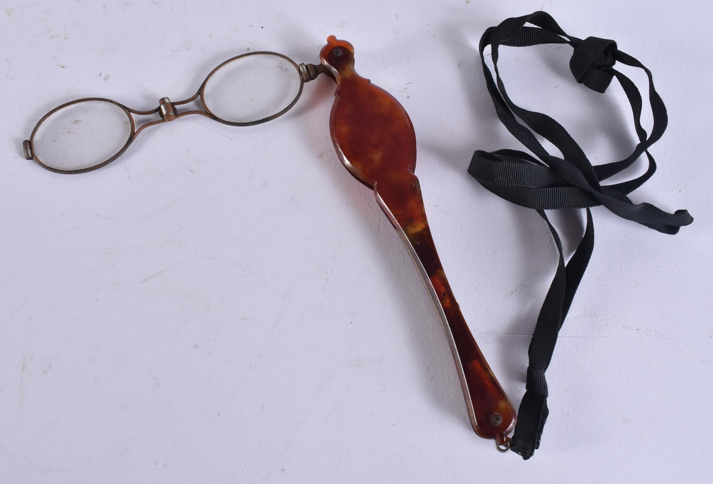 A PAIR OF TORTOISESHELL LORGNETTES. 25 cm long extended.
