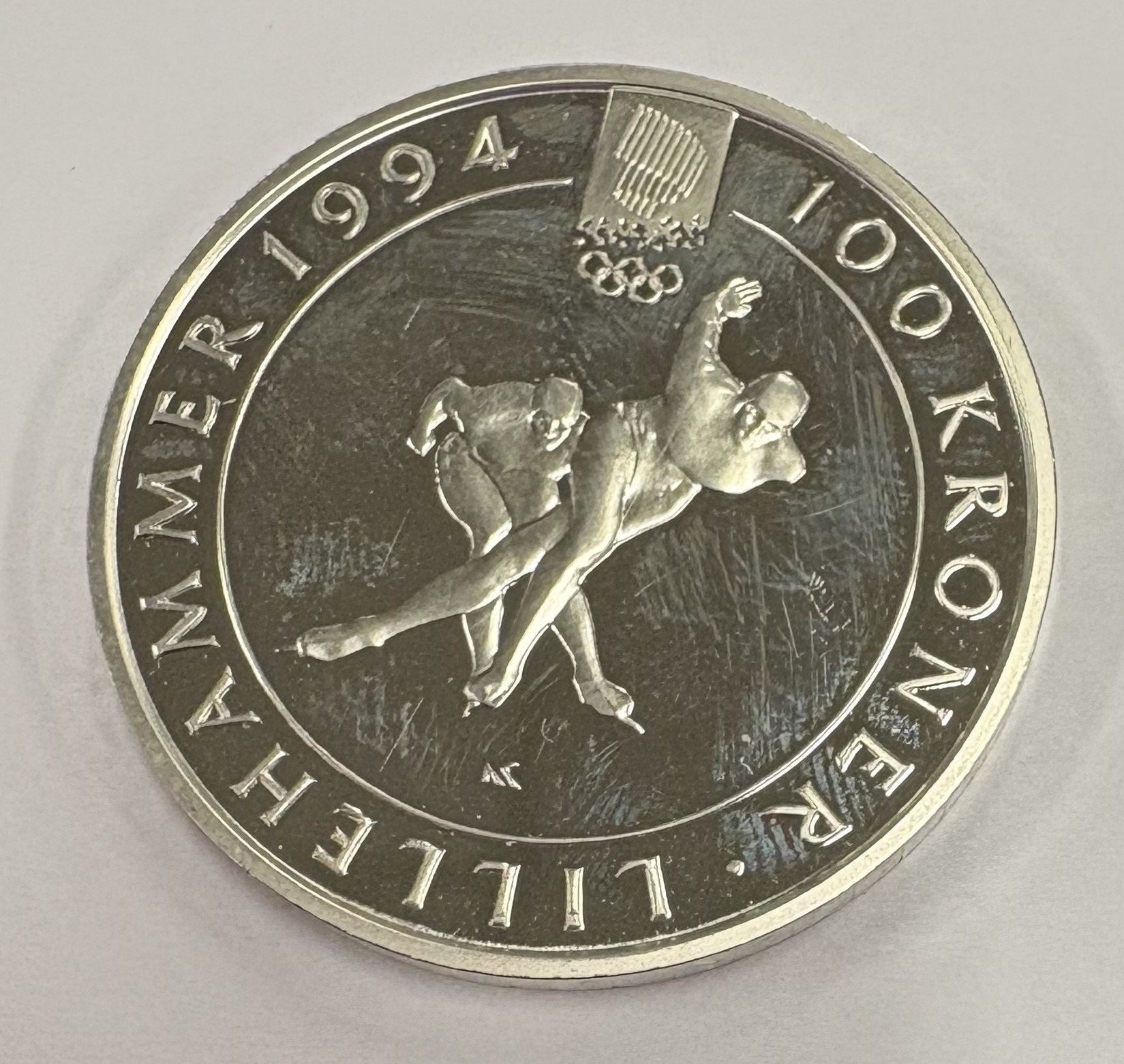 An Olympic silver coin. Approx. 32 grams. Est. £60 - £80.