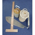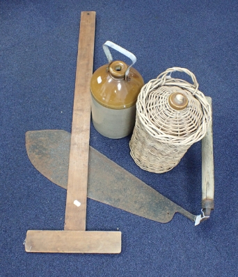 HAY KNIFE, TWO FLAGONS AND A SET SQUARE