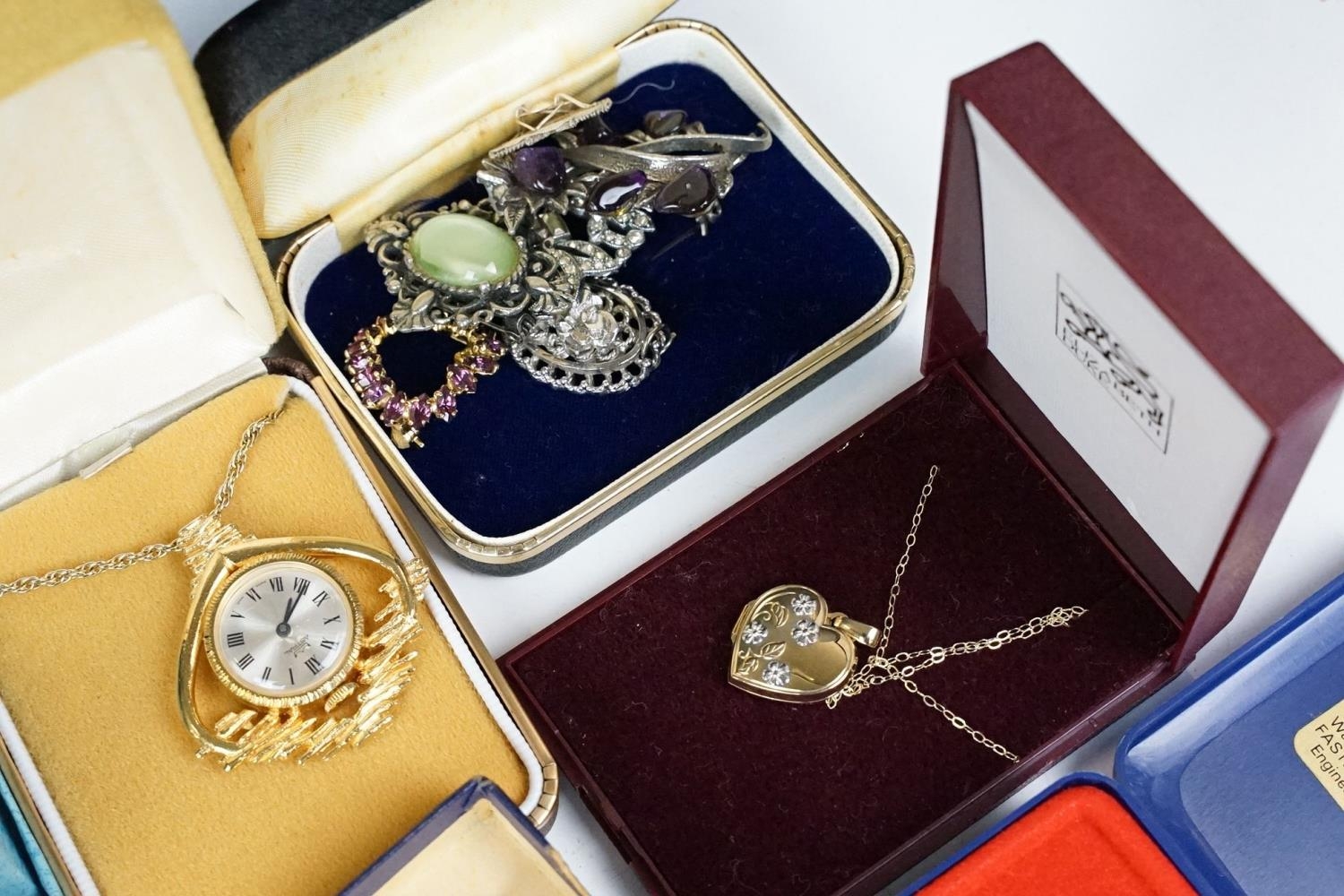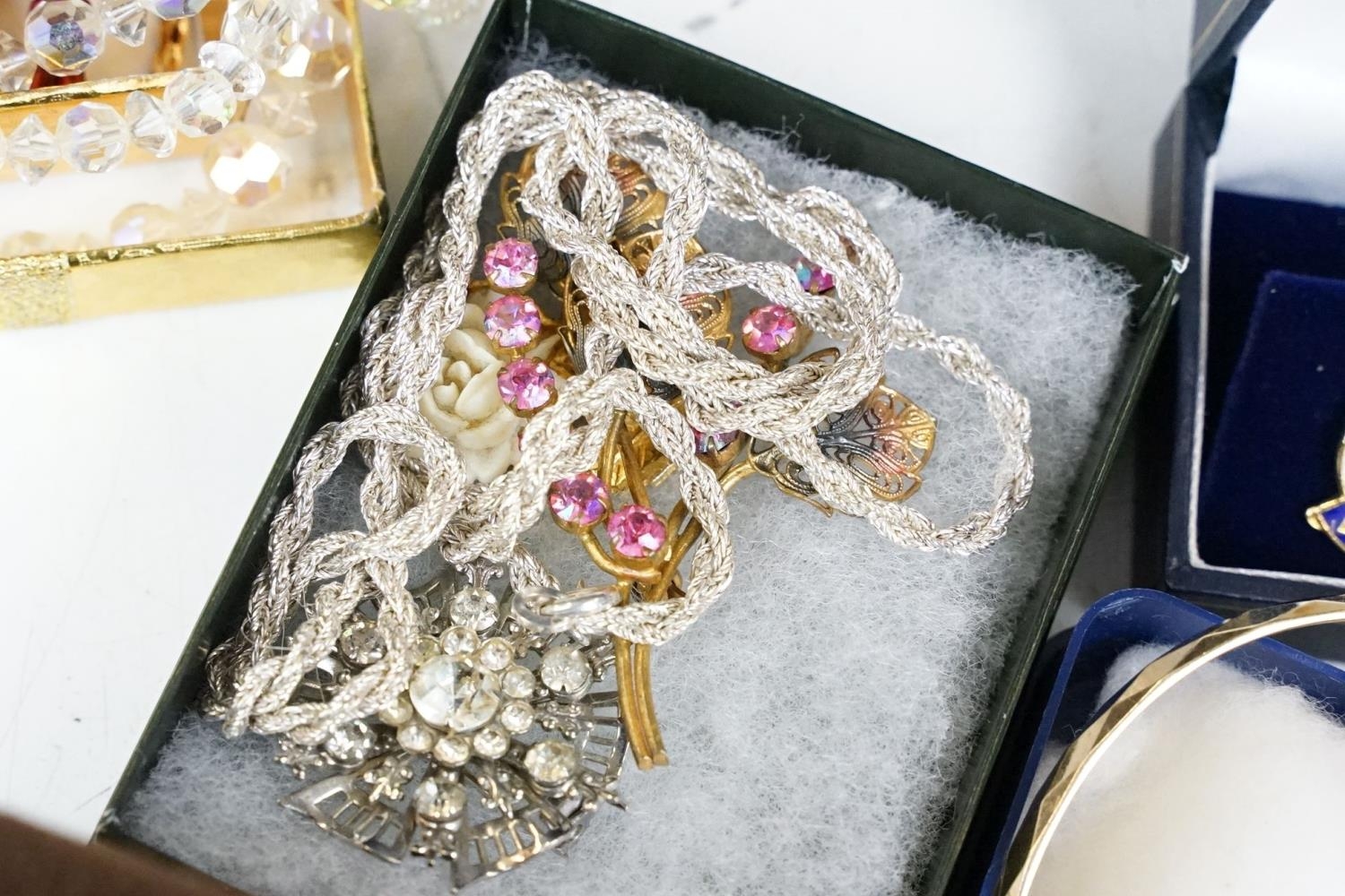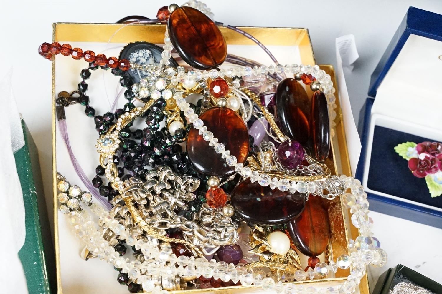 A collection of mainly vintage costume jewellery together with a selection of sporting fob medals