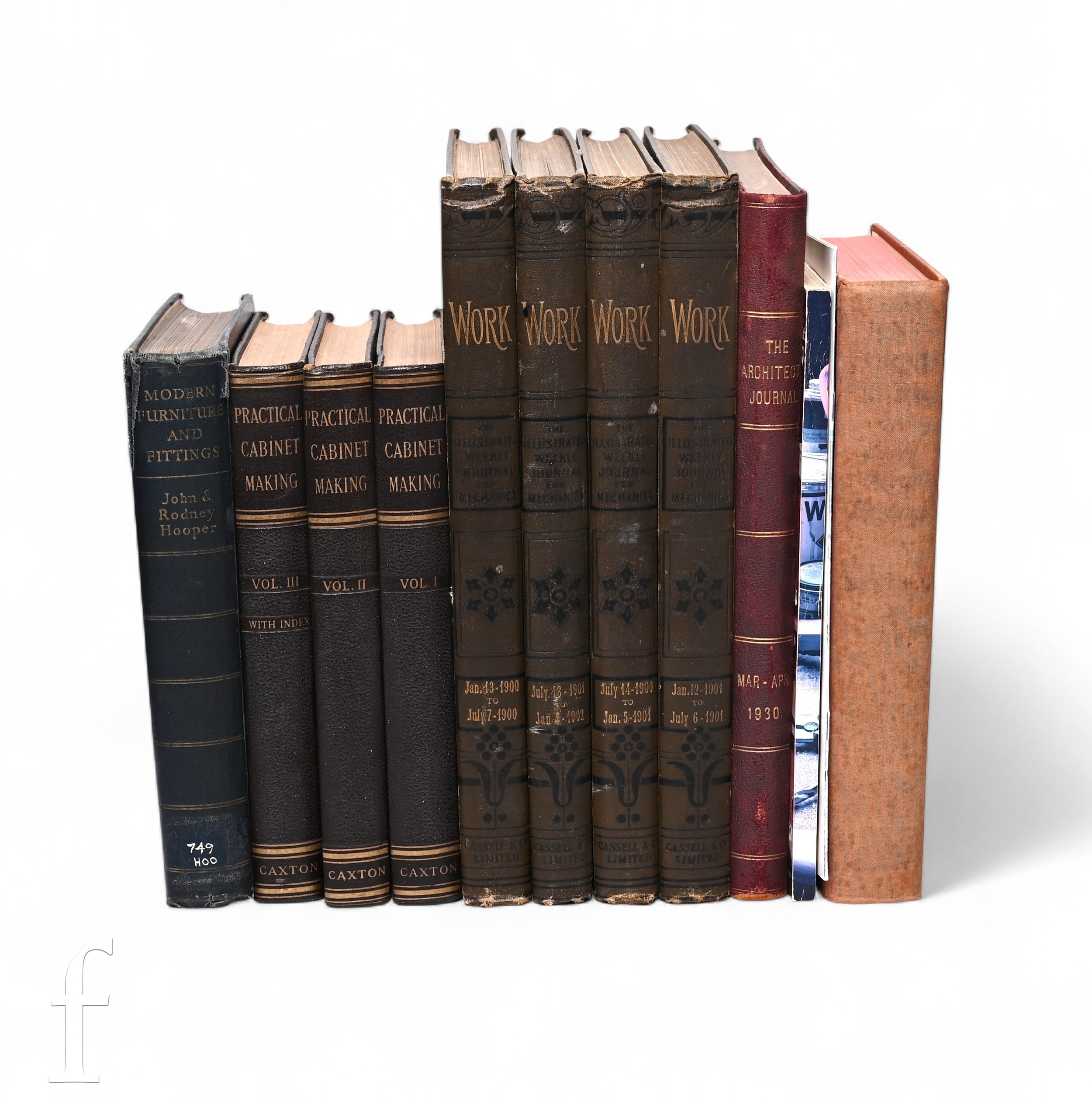 Hooper, John and Rodney - 'Modern Furniture and Fittings', published by B. T. Batsford Ldt London, second edition, 1955, illustrated, ex libris, blue cloth boards, 4to, also 'Practical Cabinet Making', published by Caxton, London, 1954, 3 vols, and various other volumes of architectural and engineering interest. (10)