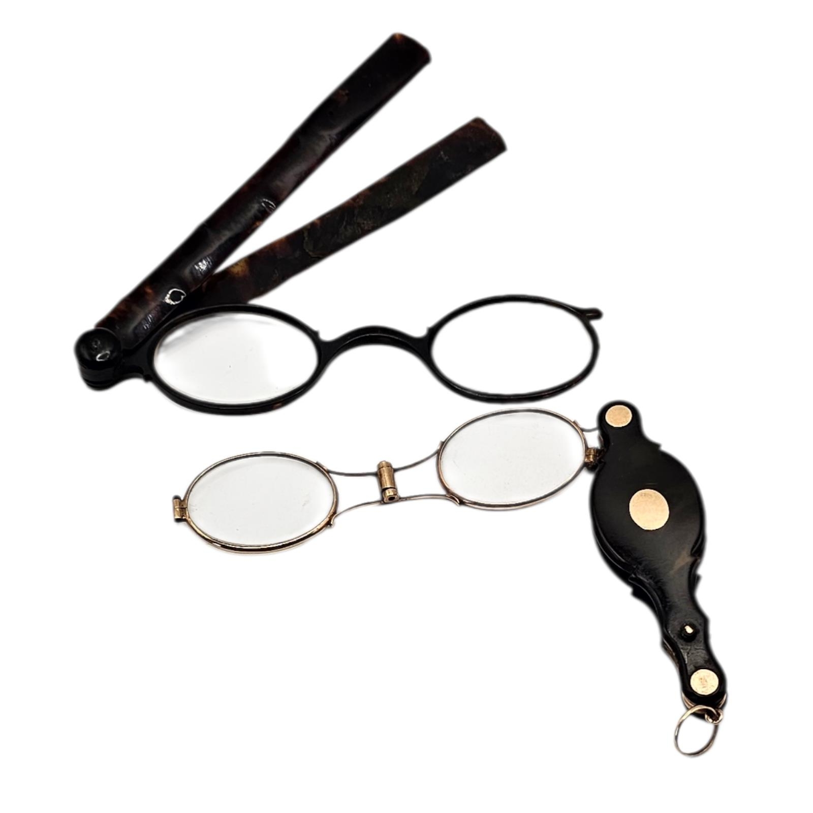 A 19TH CENTURY YELLOW METAL AND TORTOISESHELL LORGNETTES
