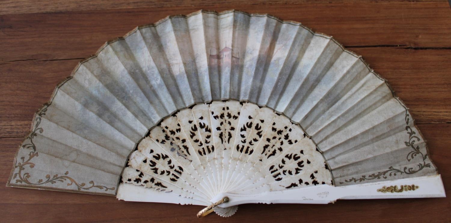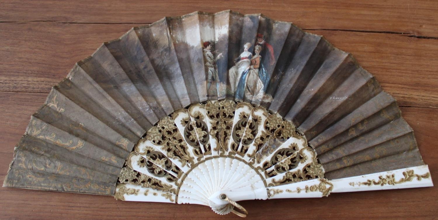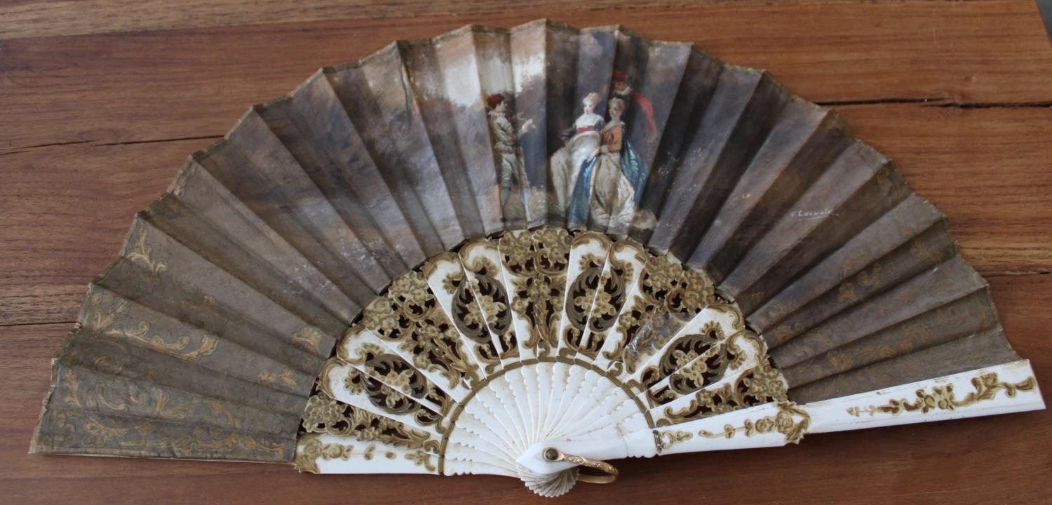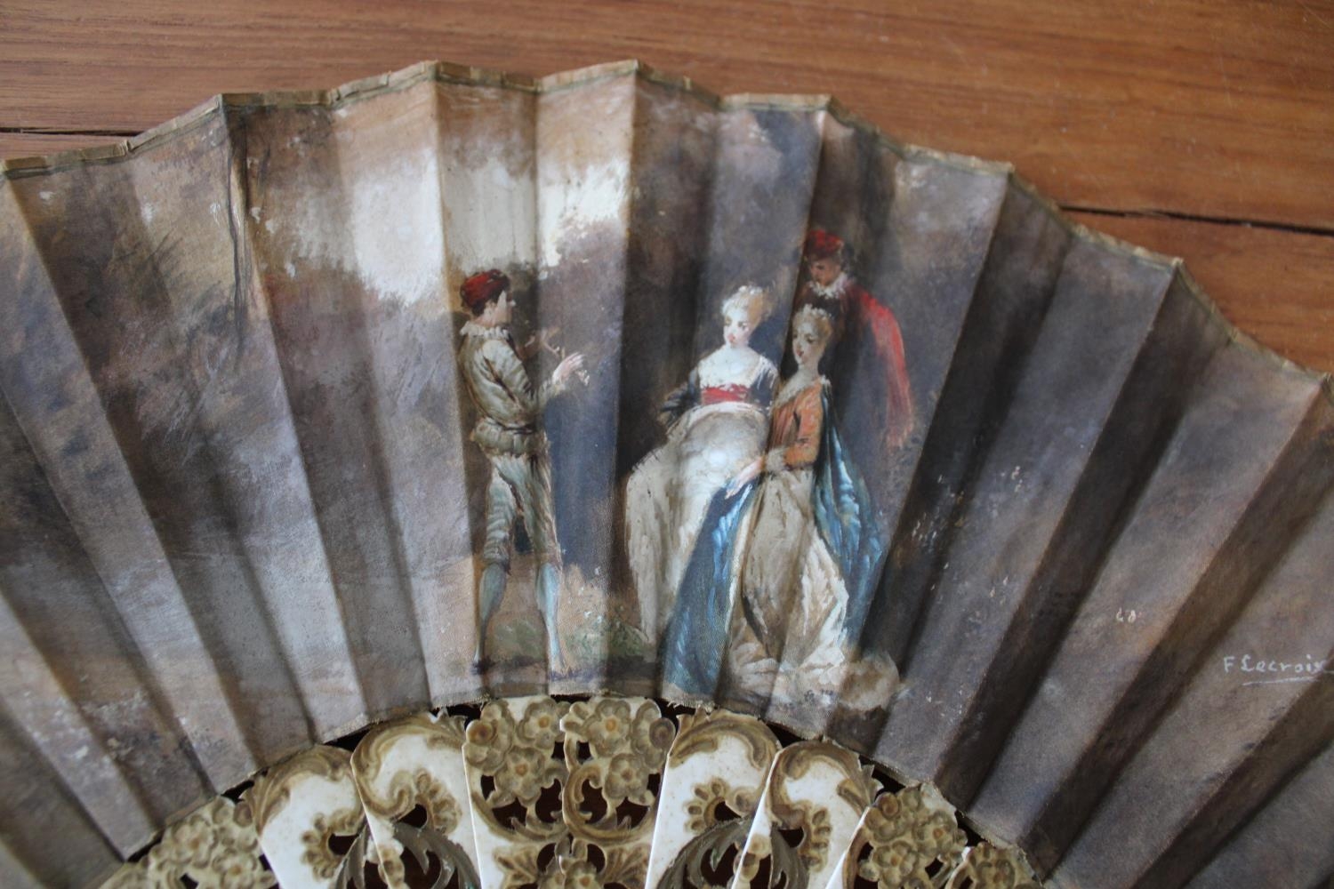 French 18th Century Hand Painted Fan. Excellent Condition for age. Small amount of repair work needed ( as shown in pictures) Measures 45cm x 25cm when fully open.