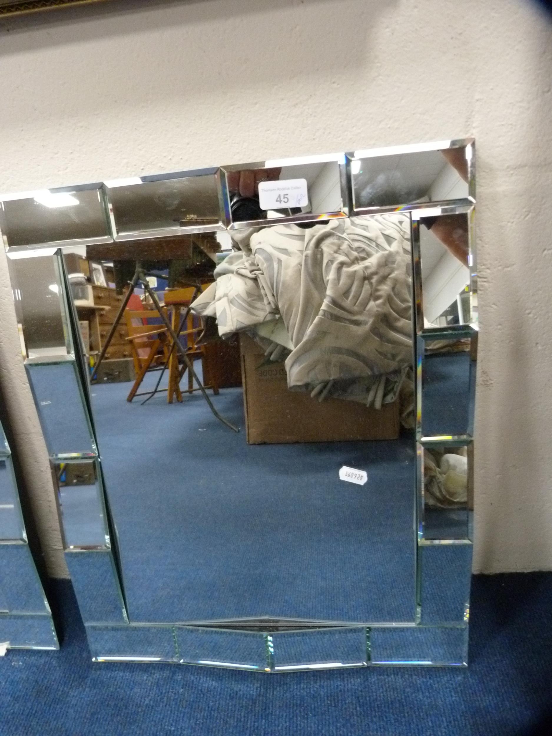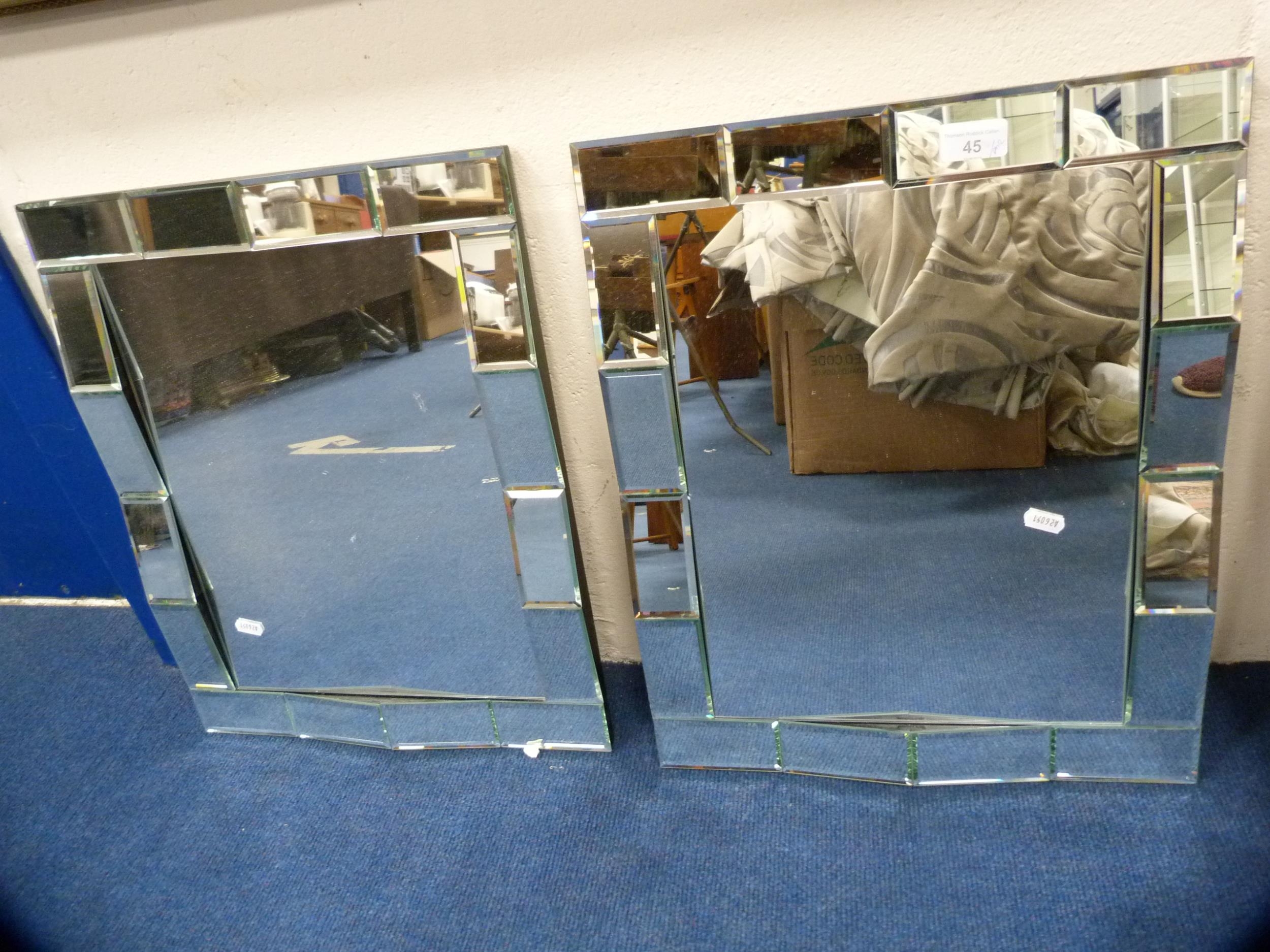 Pair of unframed wall mirrors.
