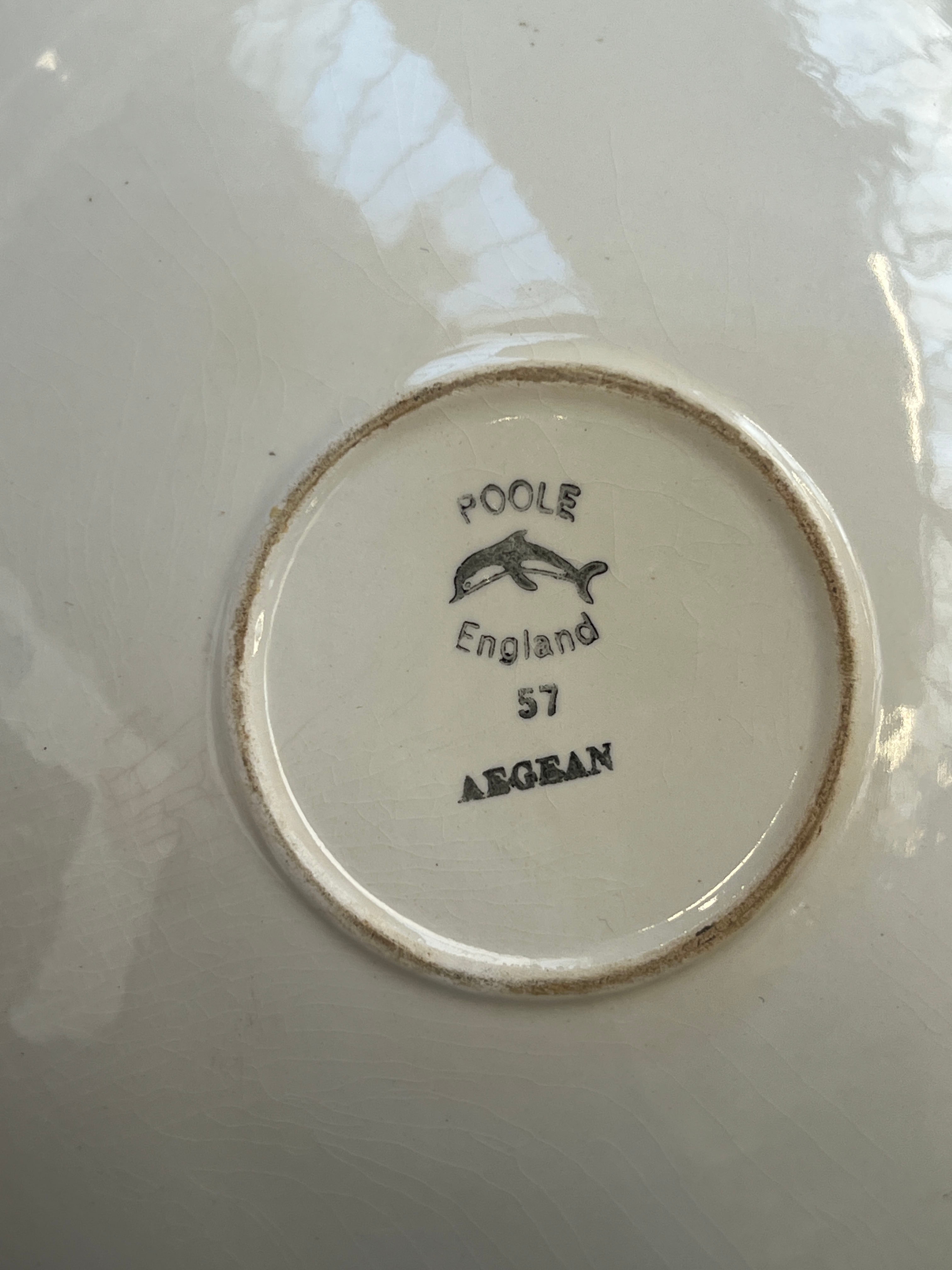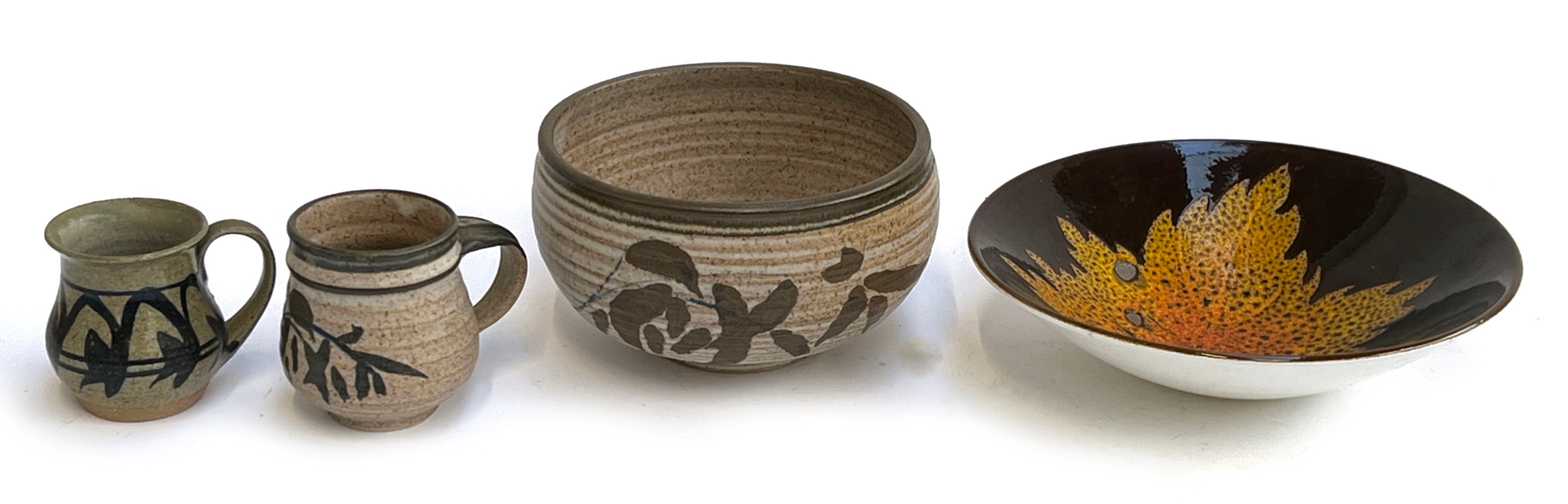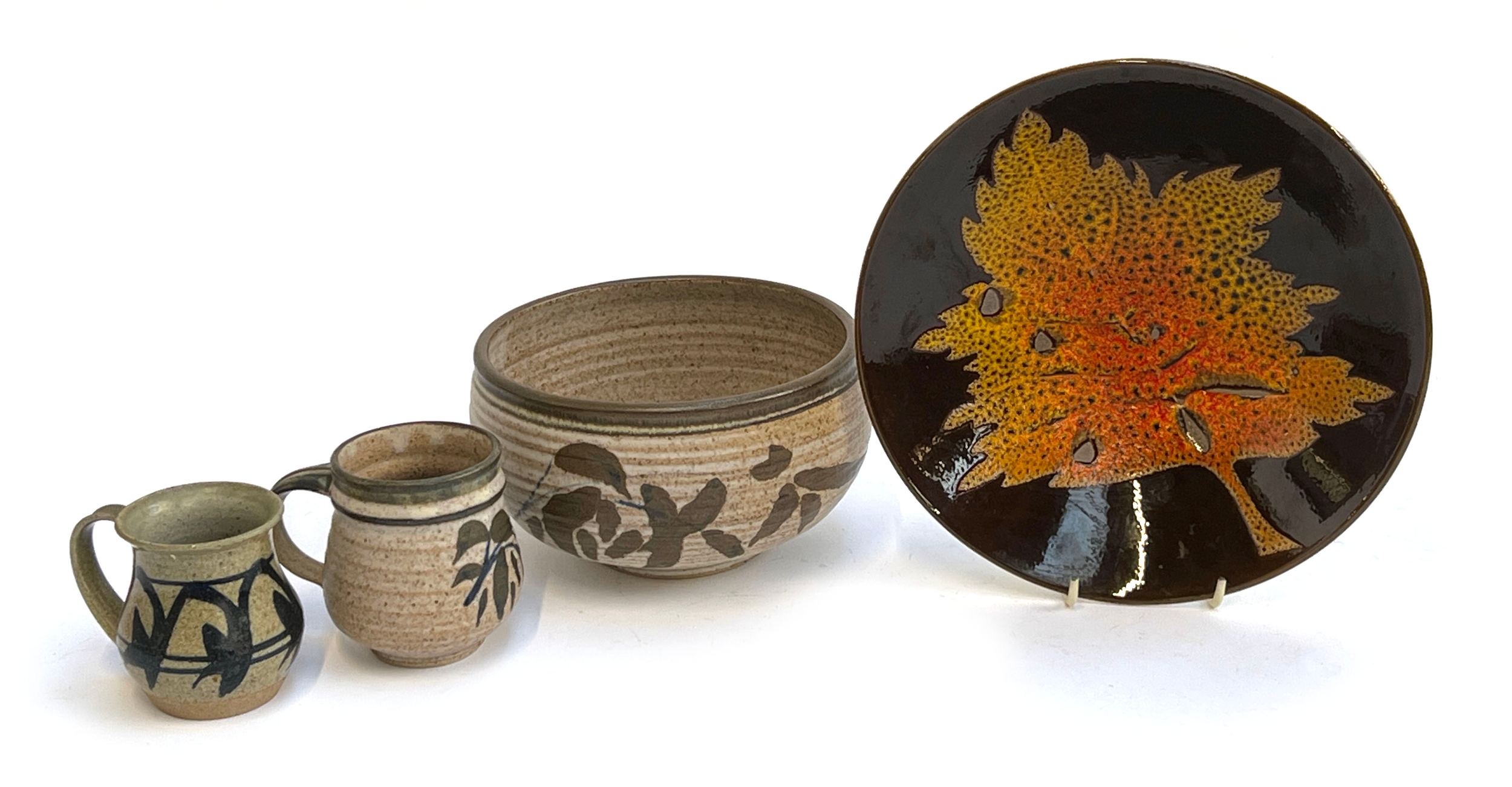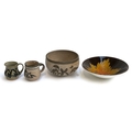 A Poole Pottery 'Aegean' maple leaf bowl, 26.5cmD; together with a stoneware bowl and mugs
