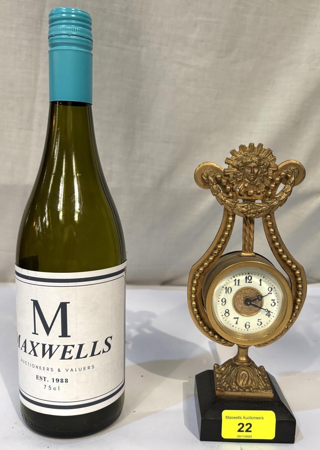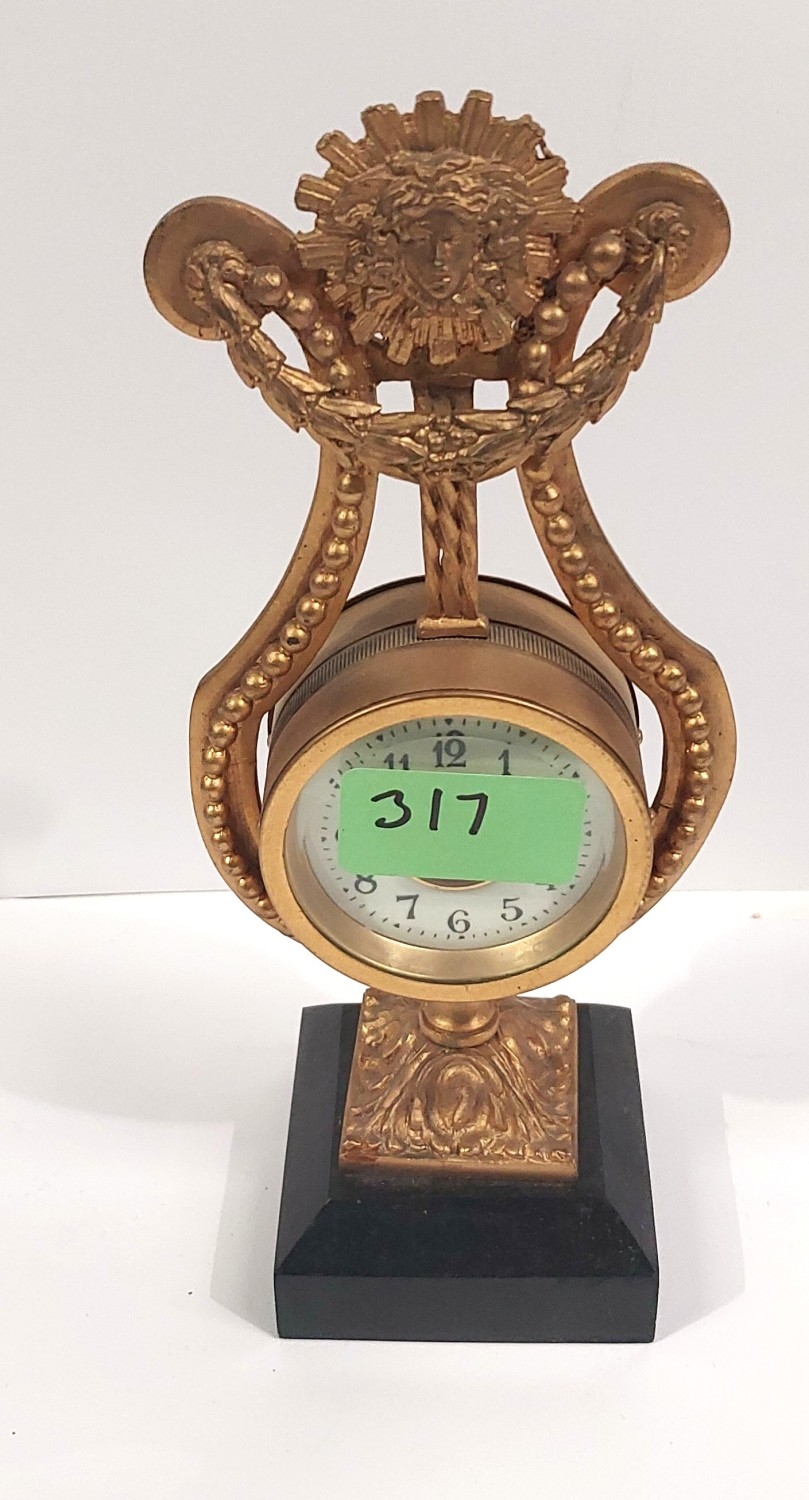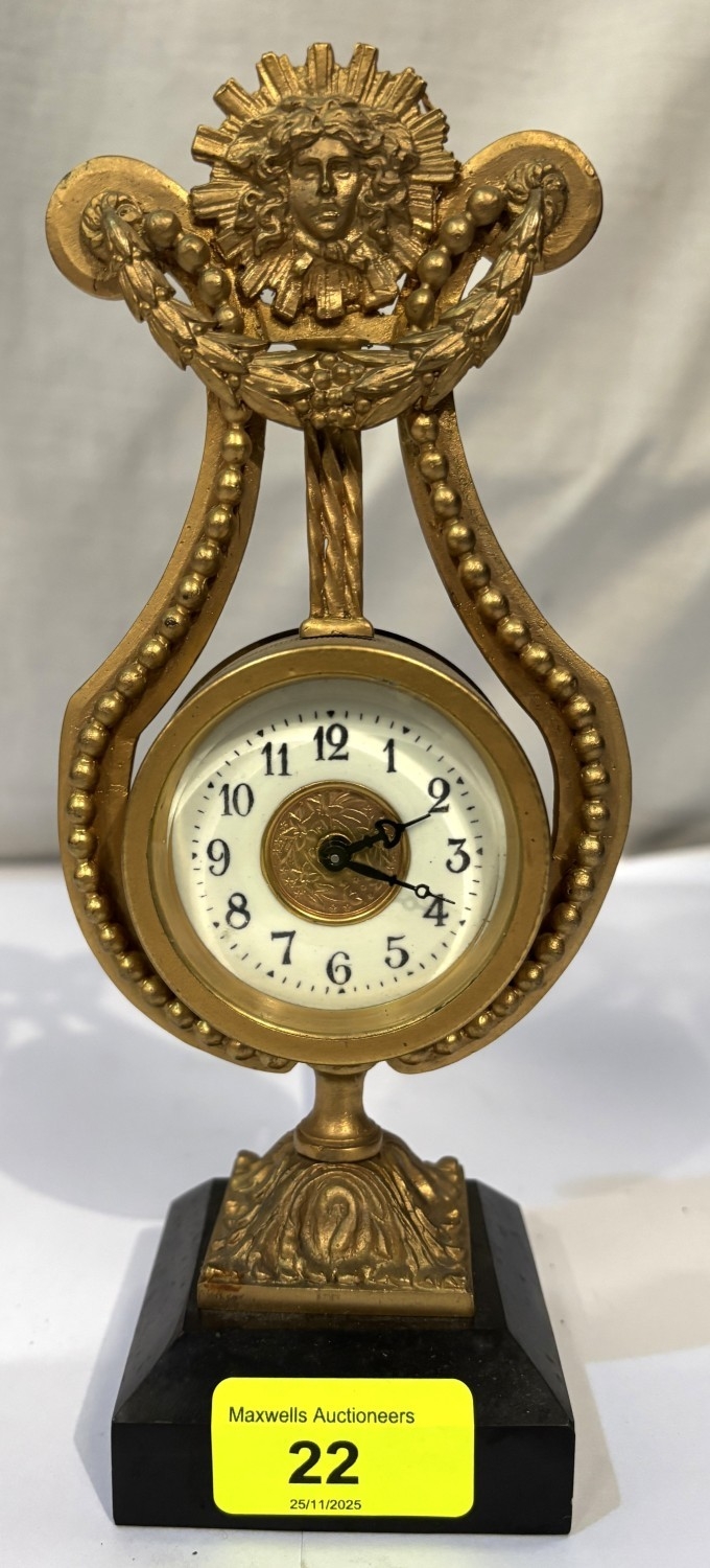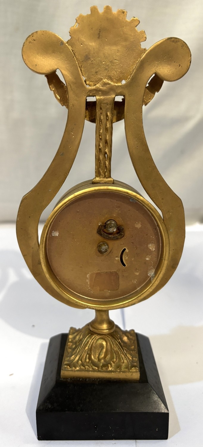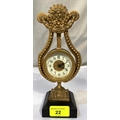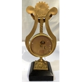 A French gilt ormalou clock in the shape of a harp
