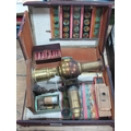 Early XX Century Brass Magic Lantern, possibly Triumph with a quantity of slides, in original (damaged) Marwan Morocco case.
