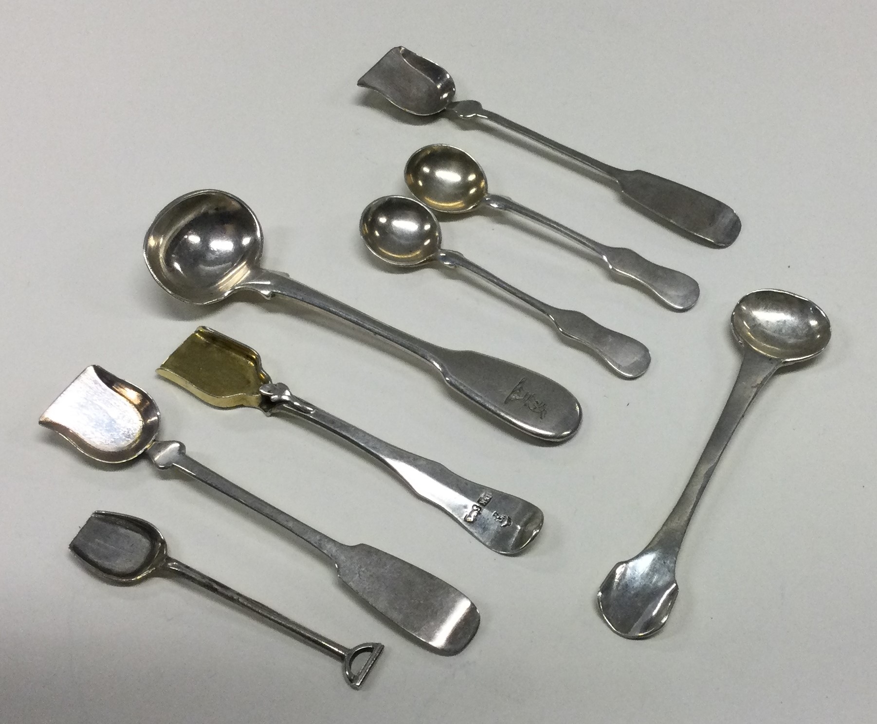Eight Russian silver salt spoons. Approx. 67 grams. Est. £40 - £60.