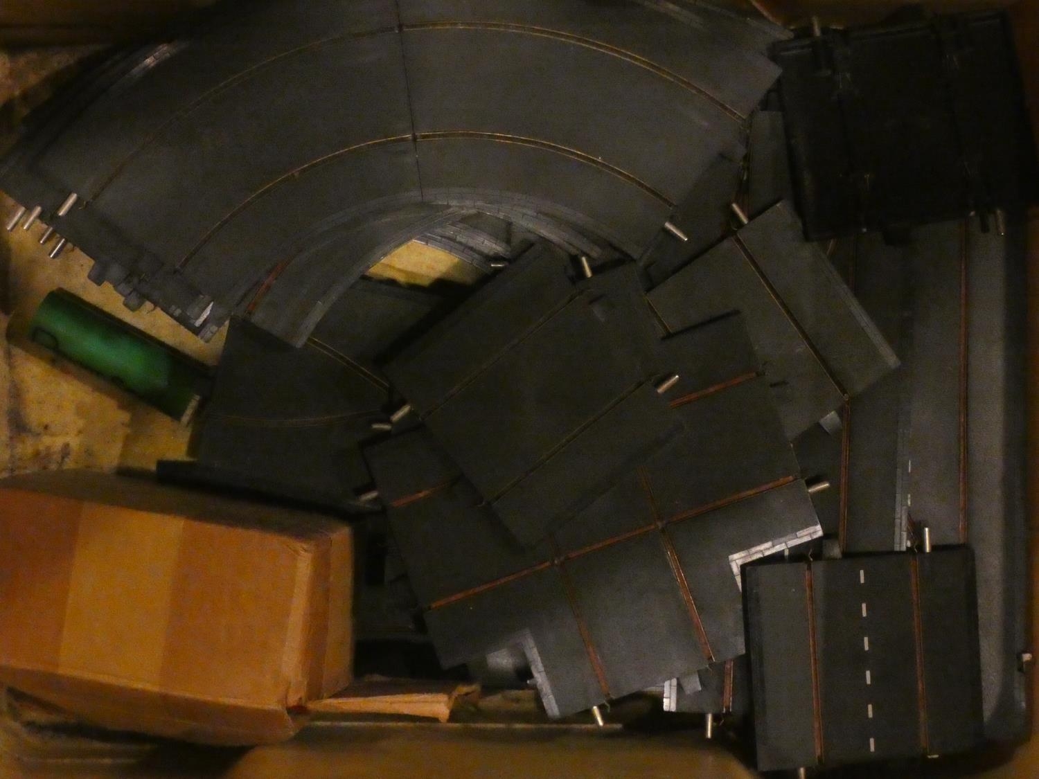 A boxed 'Super Mini Cine' & slides together with Minic racing track with cars, board games and books.