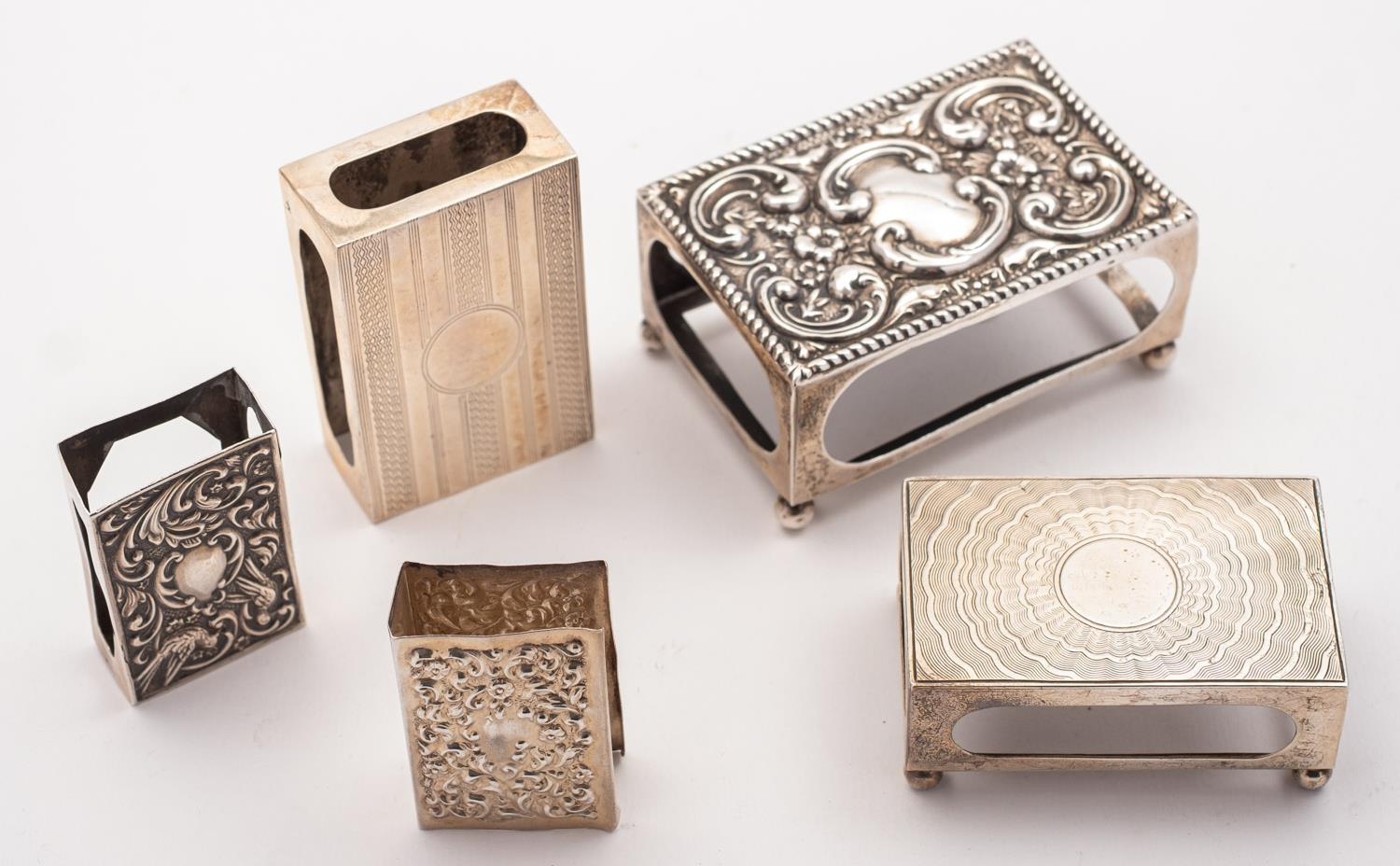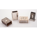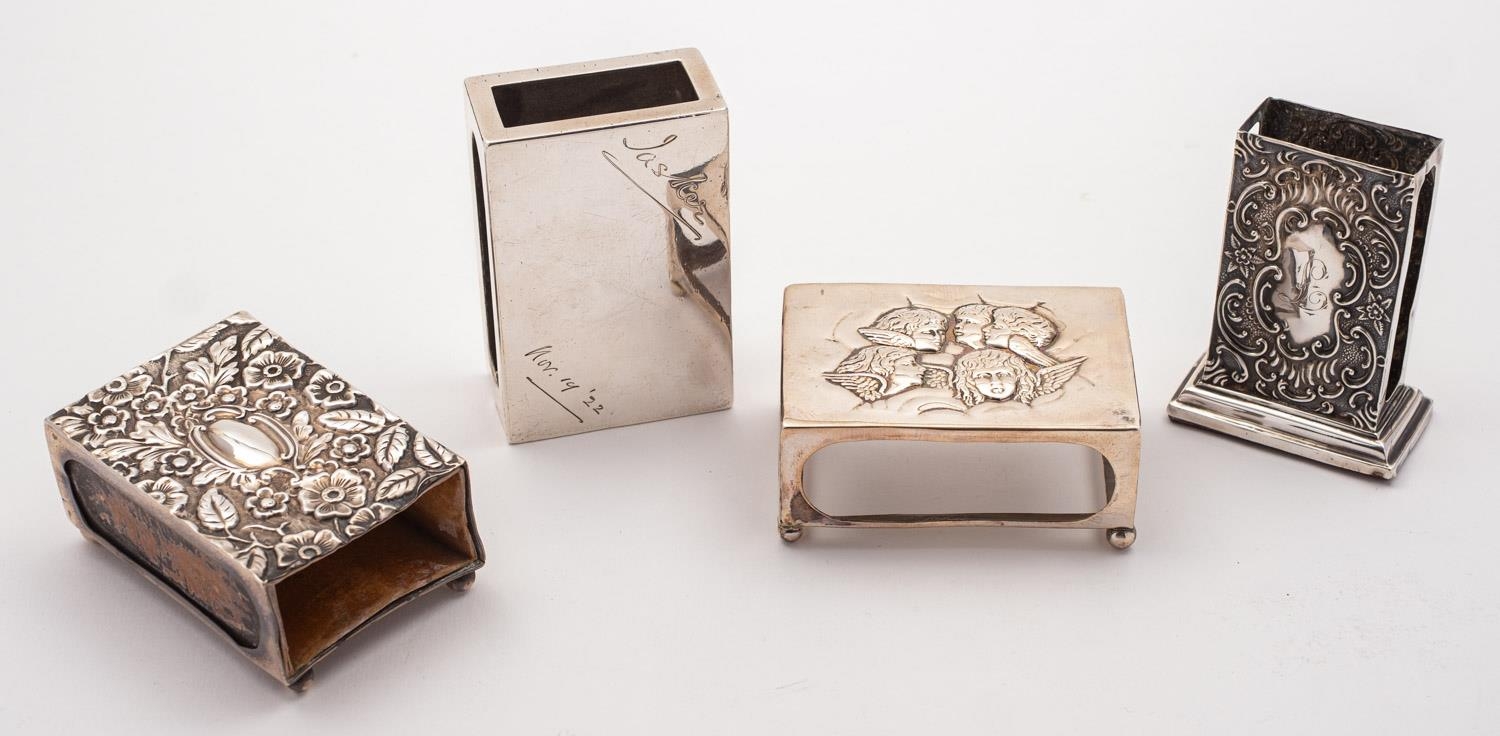 A mixed group of early 20th century silver match box holders including; an Edinburgh case by Hamilton & Inches, 1917 engraved Jasker, with eight others, 286gms., (9.1ozs.), gross, (9)