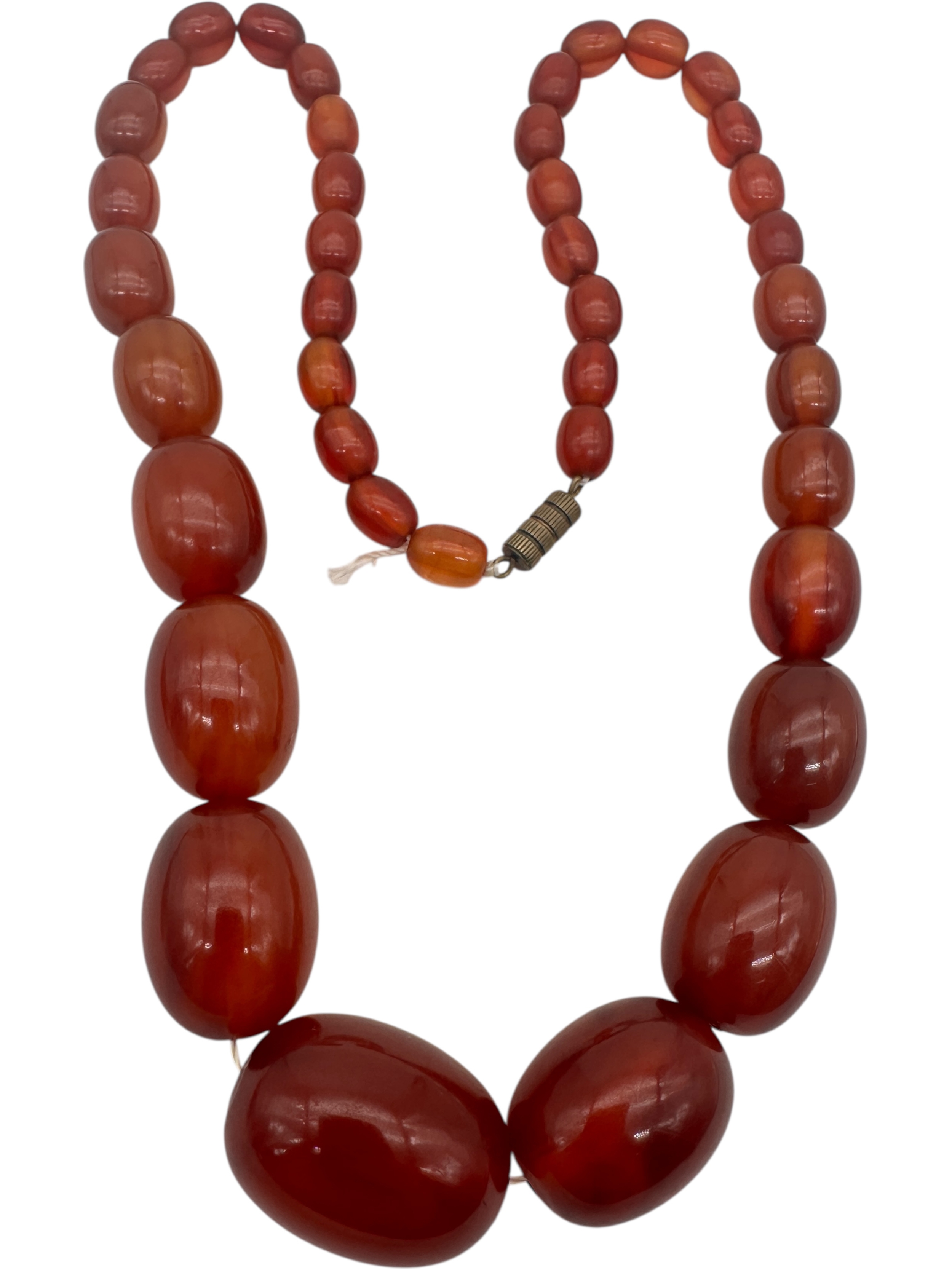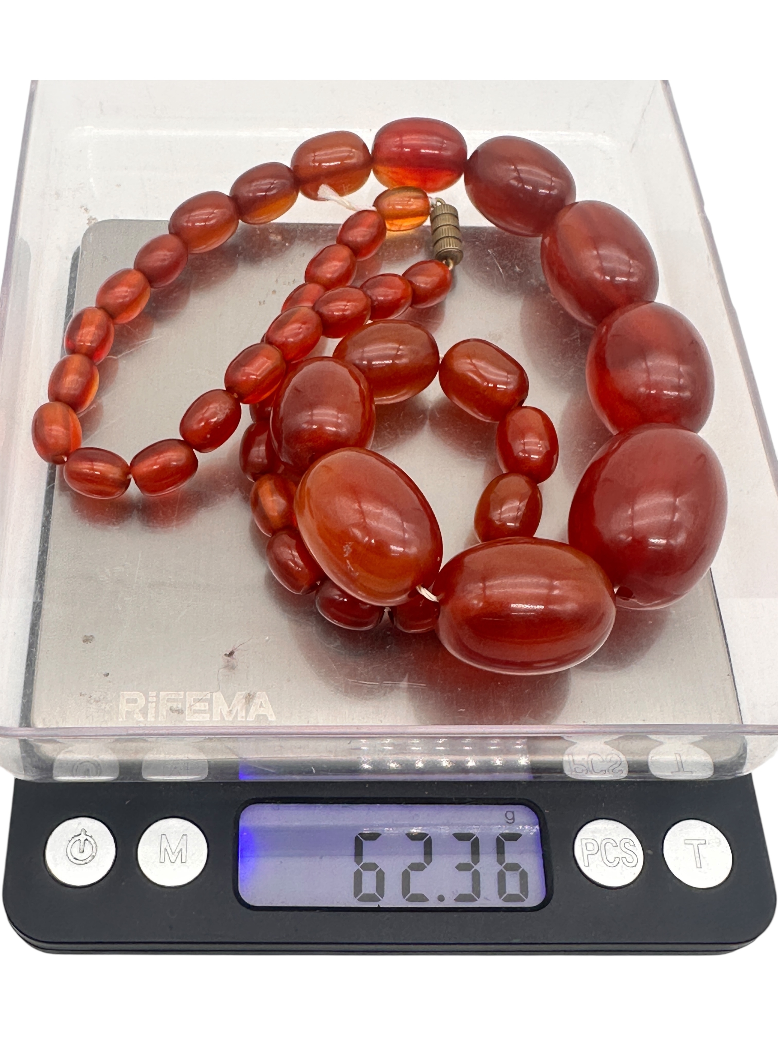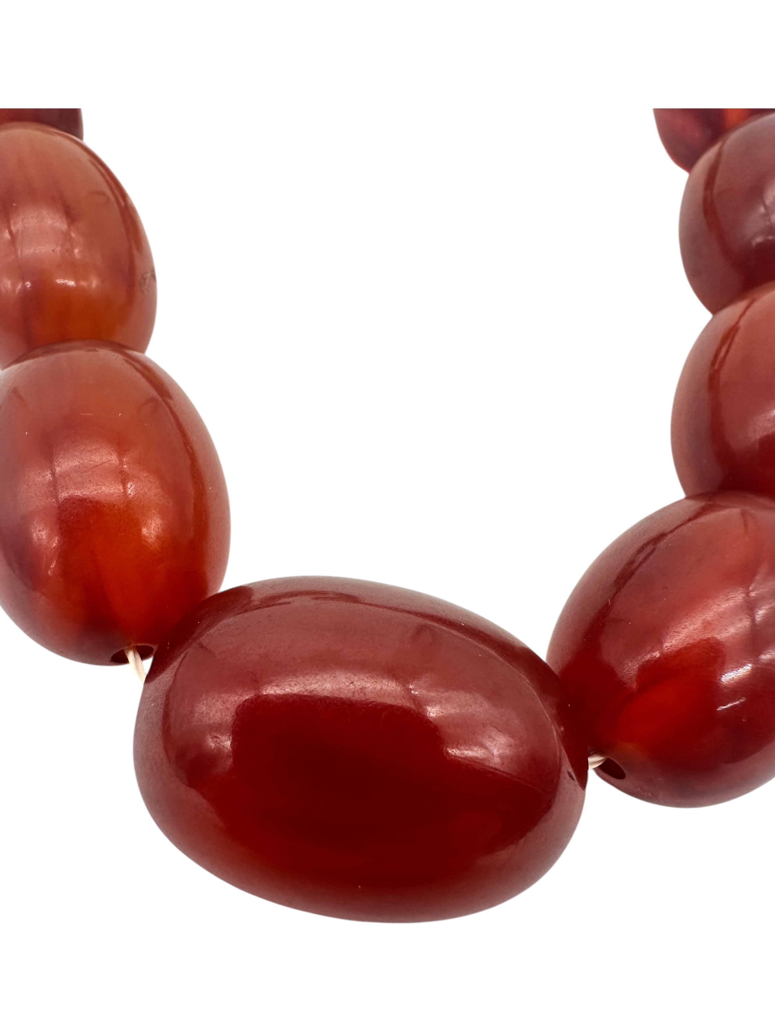 Graduated Cherry Amber Bakelite Beads. 62.3g. 21.5" long.