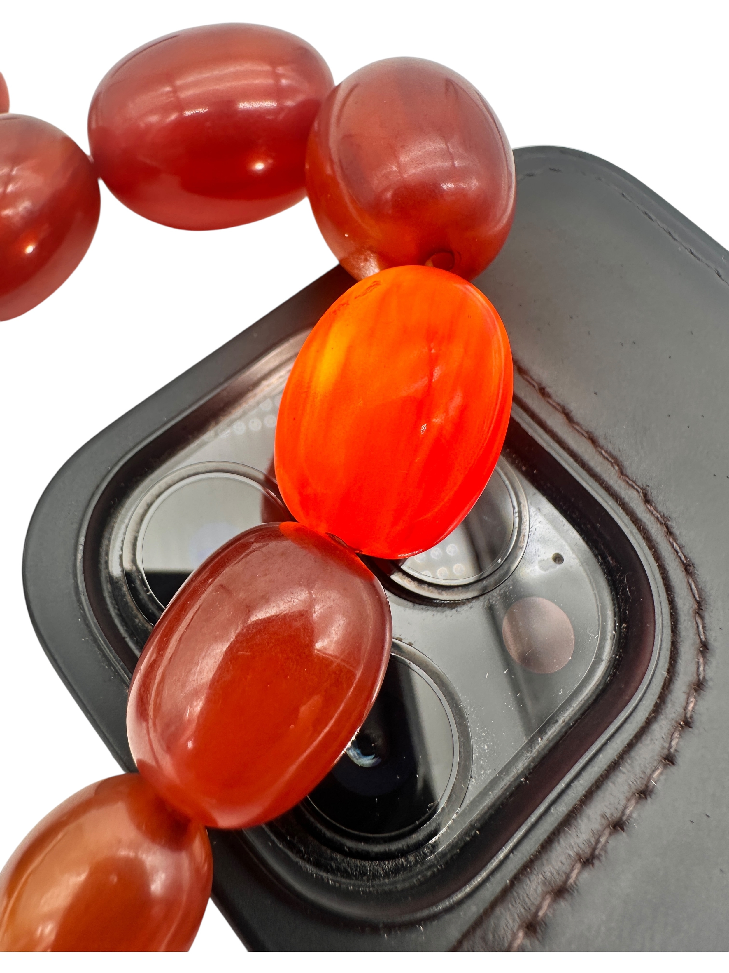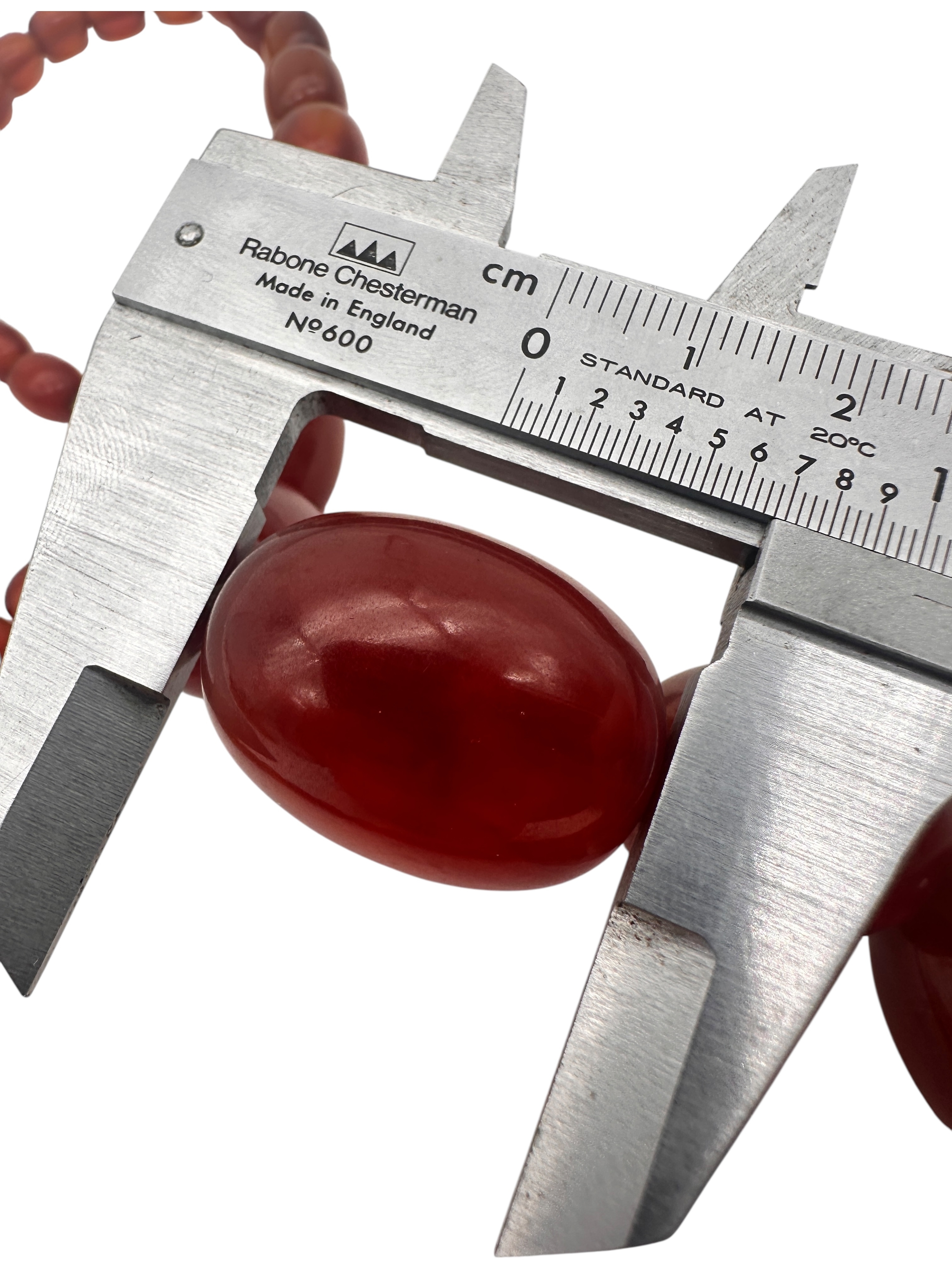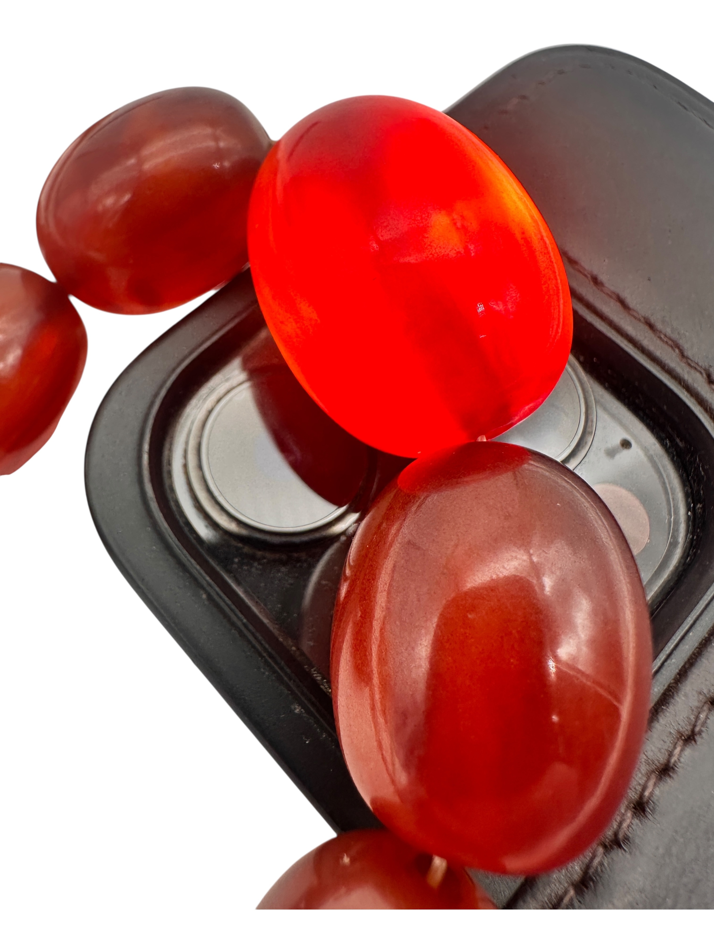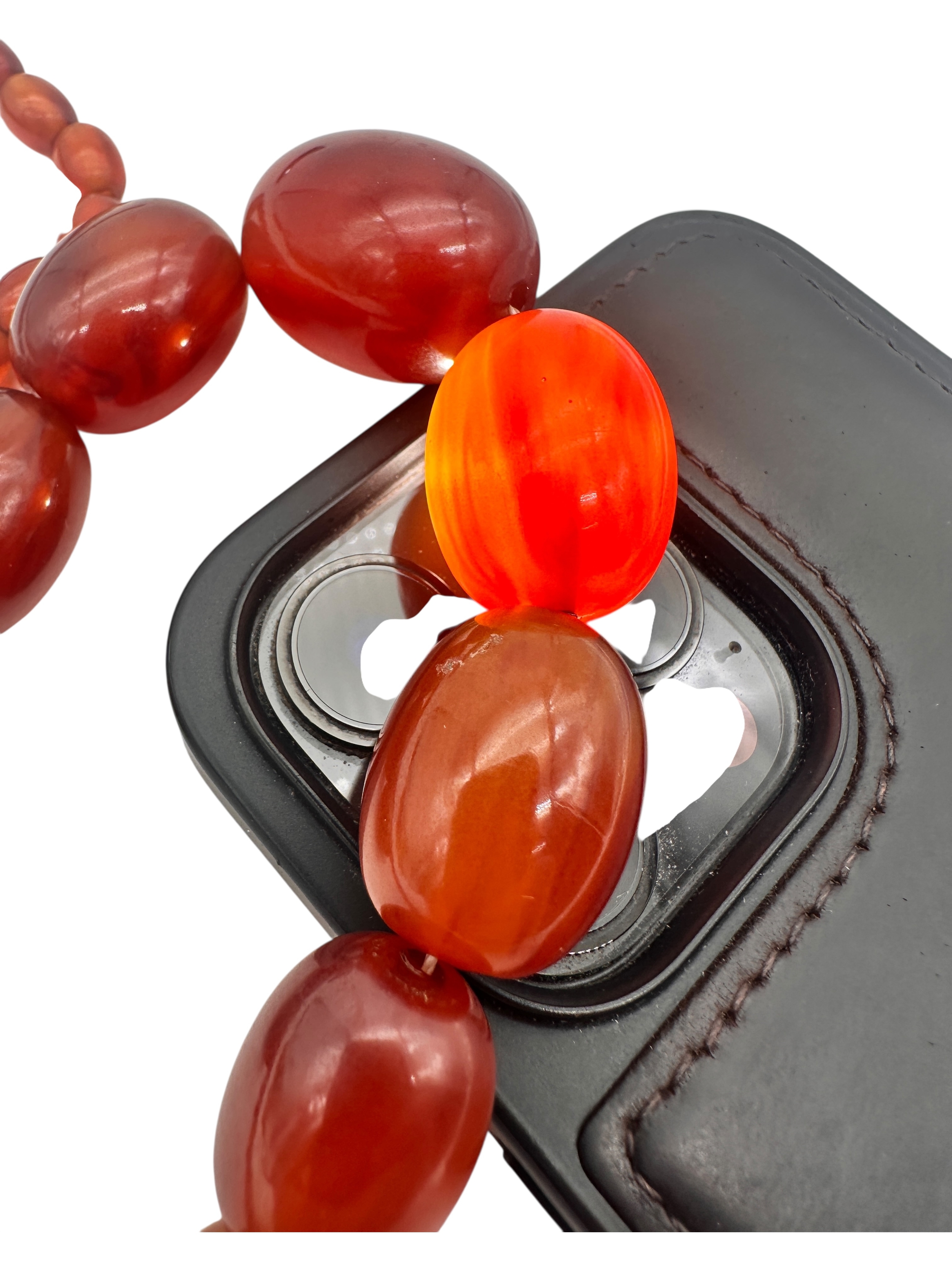 Graduated Cherry Amber Bakelite Beads. 62.3g. 21.5" long.