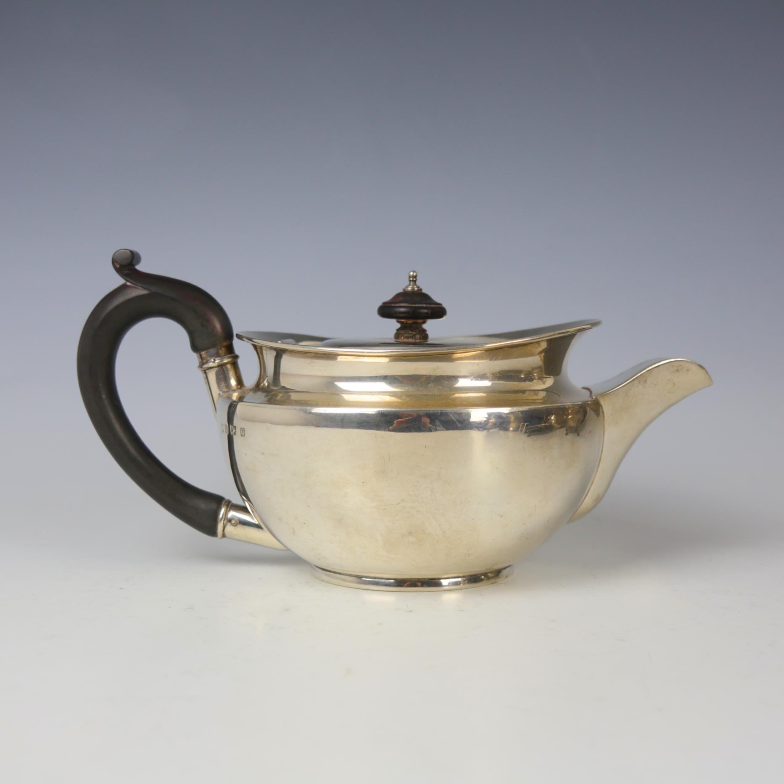 A George V silver teapot, William Bruford & Son, Birmingham 1931, the Art Deco designed teapot with flared rim above plain polished body, 13cm high, 22ozt
