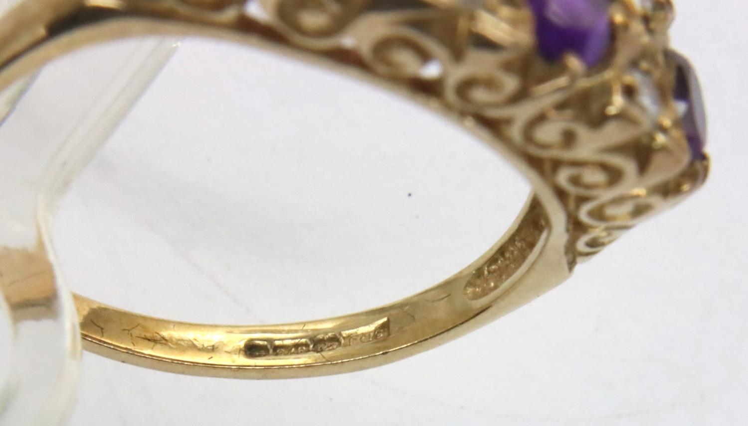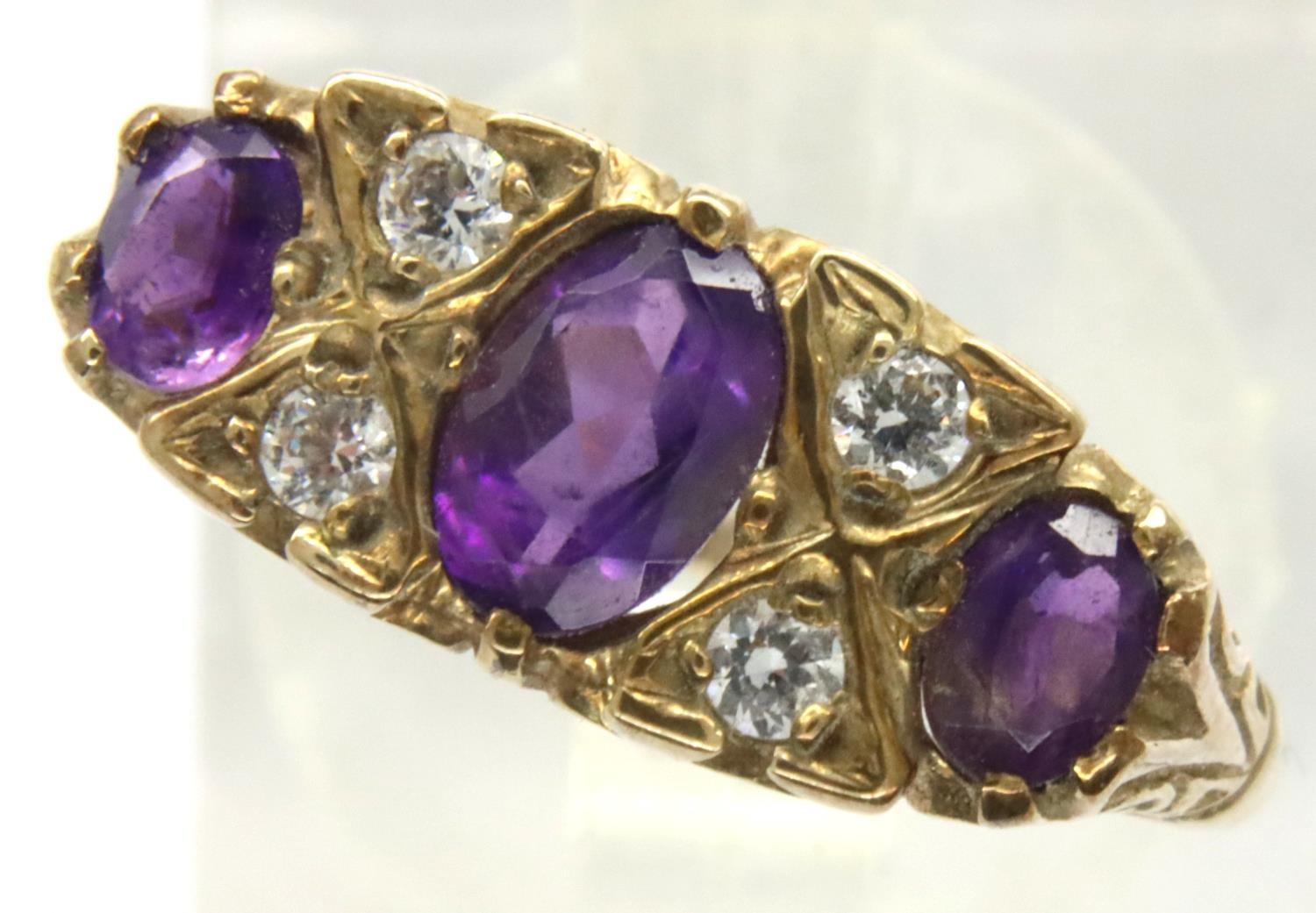 9ct gold amethyst and white stone set ring, size M/N, 2.4g. P&P Group 1 (£14+VAT for the first lot and £1+VAT for subsequent lots)