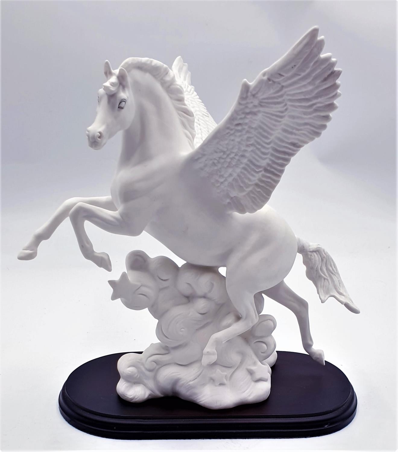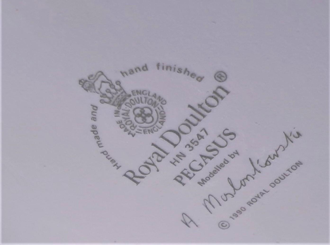 ROYAL DOULTON Large 25.4cm MODEL OF A PEGASUS HN 3547 (Model No 3187) (White Matt Colourway) ON WOODEN BASE 1990/93 Only Designed By Mr Alan Maslankowski