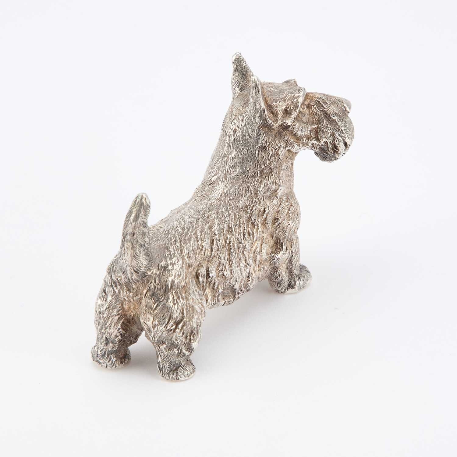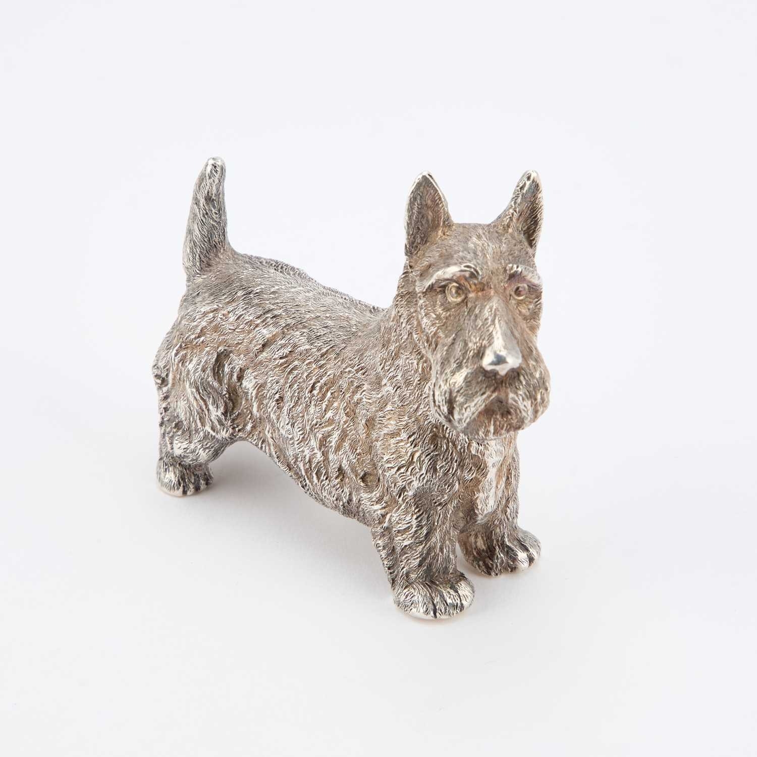 AN ELIZABETH II CAST SILVER MODEL OF A SCOTTISH TERRIER by B...