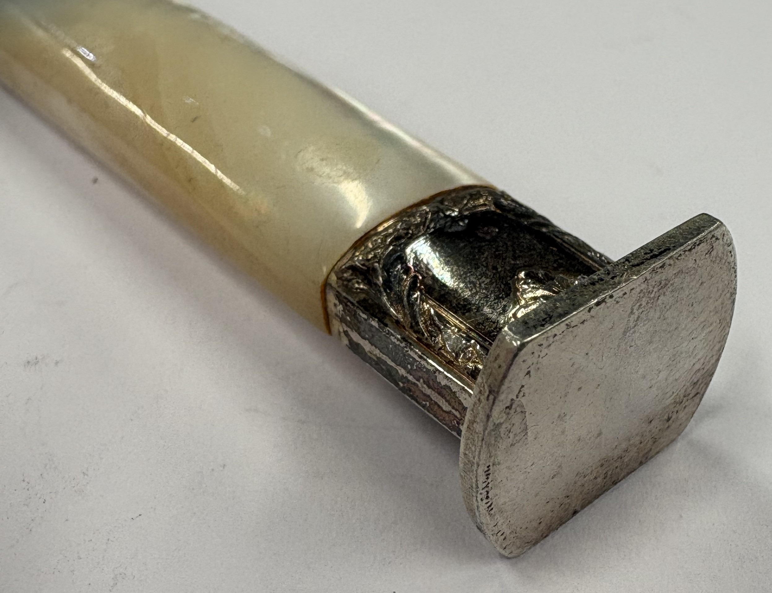 A 19th Century silver and MOP seal. Approx. 31 grams of gross weight. Est. £80 - £120.