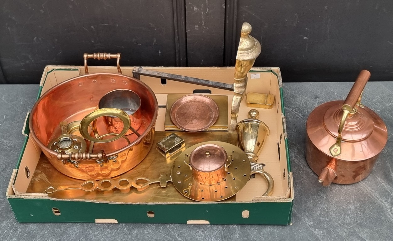 A collection of copper and brass.