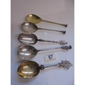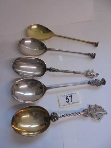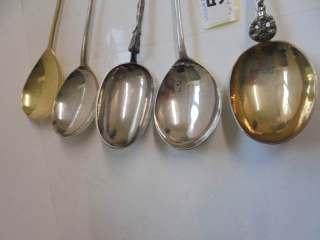 Five early spoons with finials.