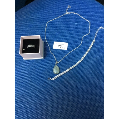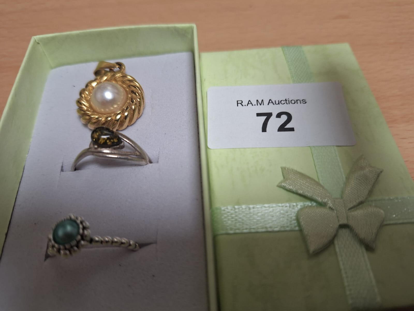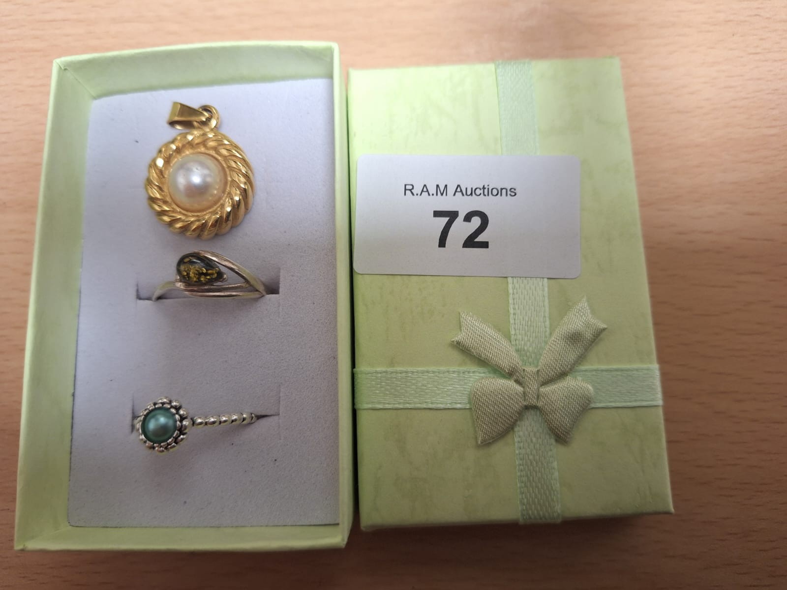 Boxed 925 Silver Stoned Ring, Pendant and a White Metal Ring