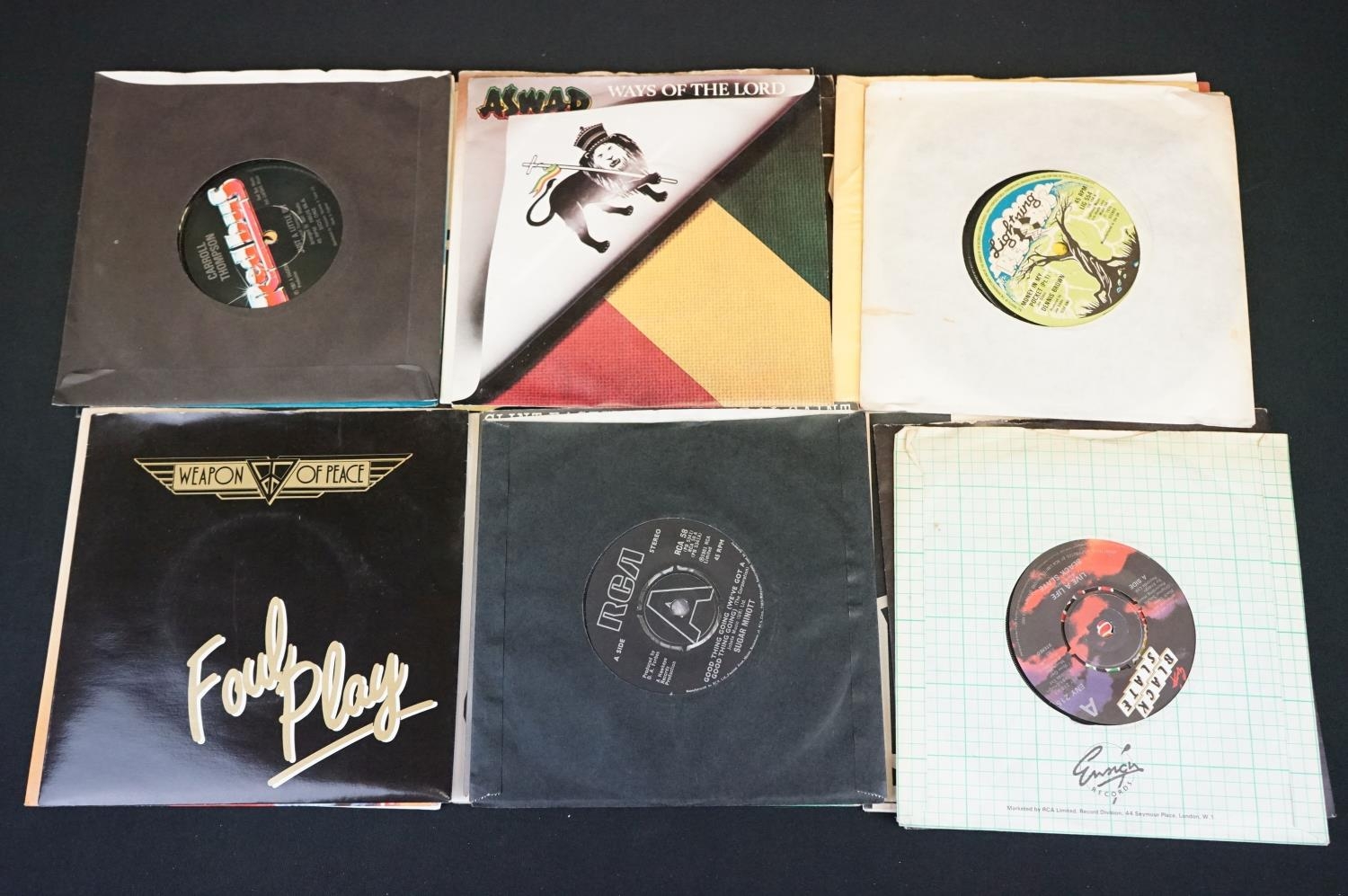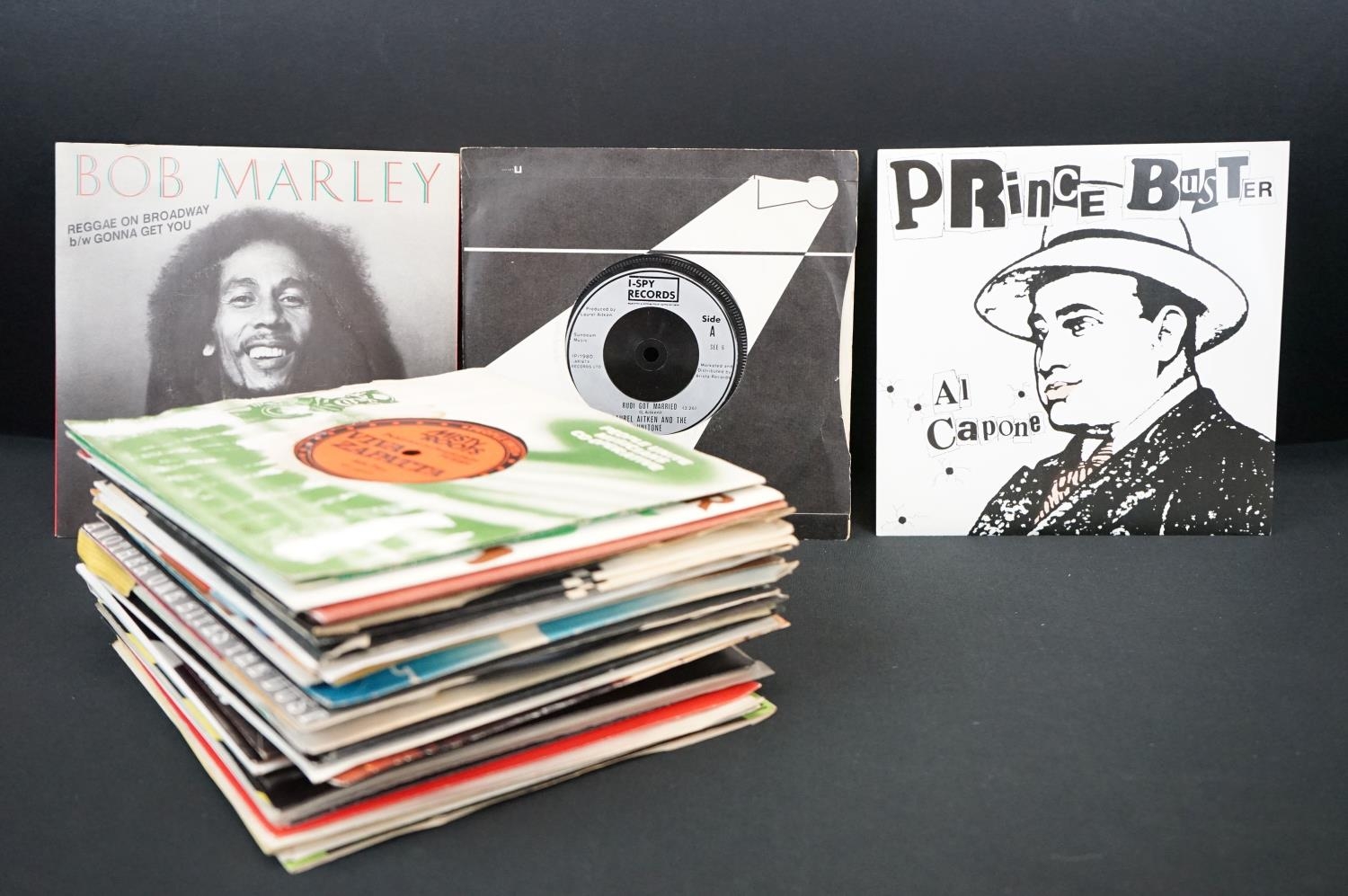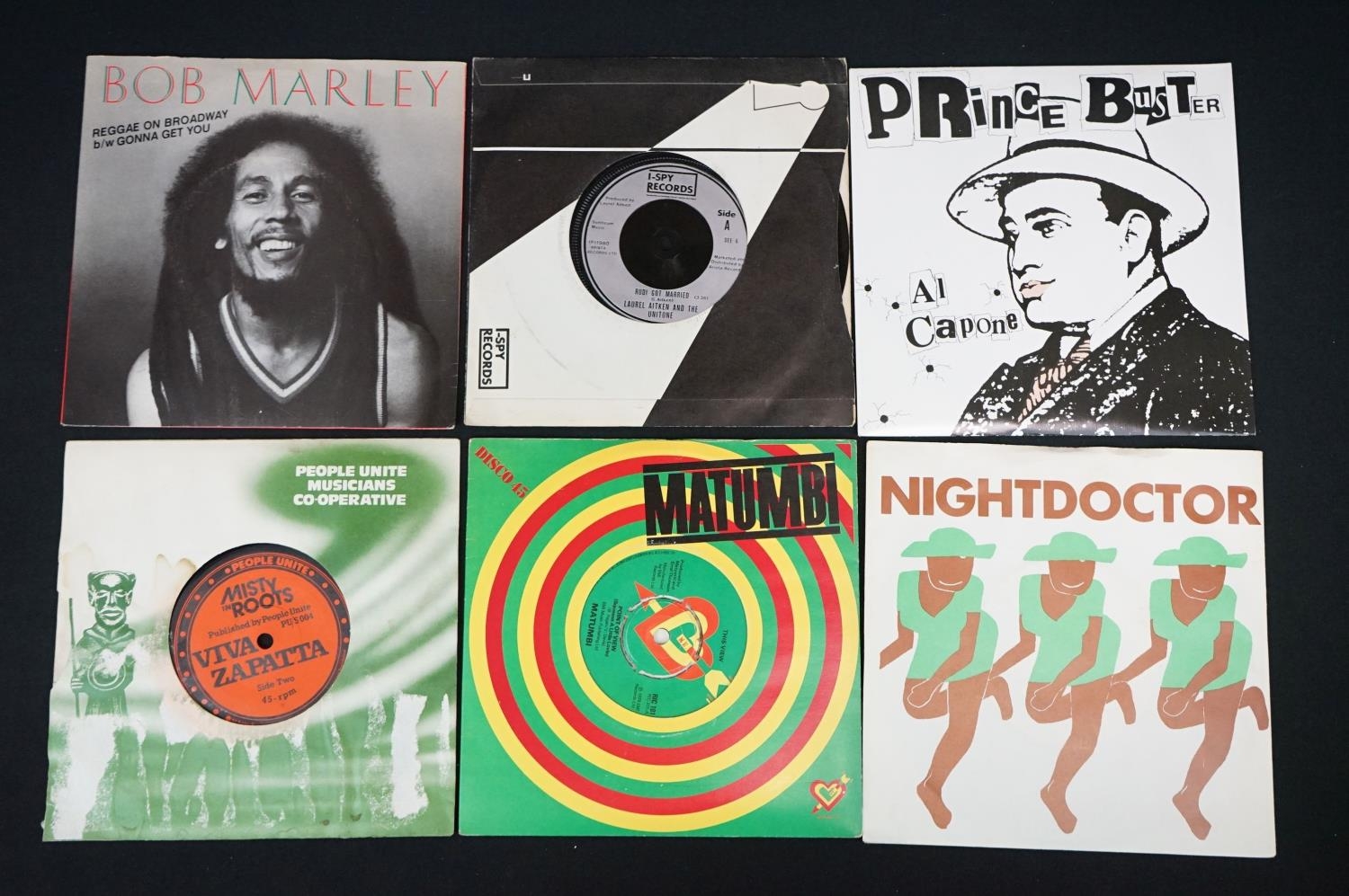 Vinyl - Reggae / Ska / 2 Tone - 43 UK pressing 7” singles to include: Bob Marley - Reggae On Broadway (1981, K 79250) EX / EX. Laurel Aitken And The Unitone - Rudi Got Married (1980, I-Spy Records, SEE 6) EX + Original Company Sleeve. Prince Buster (SP 145) EX/ EX, Misty In Roots - Zapata (1980, People Unite Records, PU/S 004) EX + Original Company sleeve (damaged). Matumbi - Point Of View (1979, RIC 101) EX / VG+. Nightdoctor - Music like Dirt (1980, Young Blood records, YB 105) EX- / EX. The Specials AKA / The Selecter - Gangsters (1979, UK, 2 Tone Records, Paper Labels, TT 1) EX, The Beat (1979, 2 Tone, TT 6, Paper labels) EX + Original company sleeve, The Specials AKA (1980, 2 Tone, CHS TT 7, Paper Labels) EX- / EX. The Specials - Rat Race (1980, CHS TT 11) EX + Company sleeve. The Bodysnatchers - Easy Life (1980, CHS TT 12) EX + Company Sleeve, Rhoda with The Specials AKA - The Boiler (1982, CHS TT 18, Paper Labels) VG+ / EX. Roddy Radiation & The Specials (1980, TT 999, Paper Labels) EX. Also to include: Jimmy Cliff, Winston groovy, Third World (2 Titles), Clint Eastwood & General Saint, Aswad, Carroll Thompson, Dennis Brown, Black Slate, Sugar Minott, The Beat (2 Titles), The Selecter, Madness (3 Titles), Dexy’s Midnight Runners (2 Titles), Bad Manners (3 Titles), UB 40 (5 Titles) and others