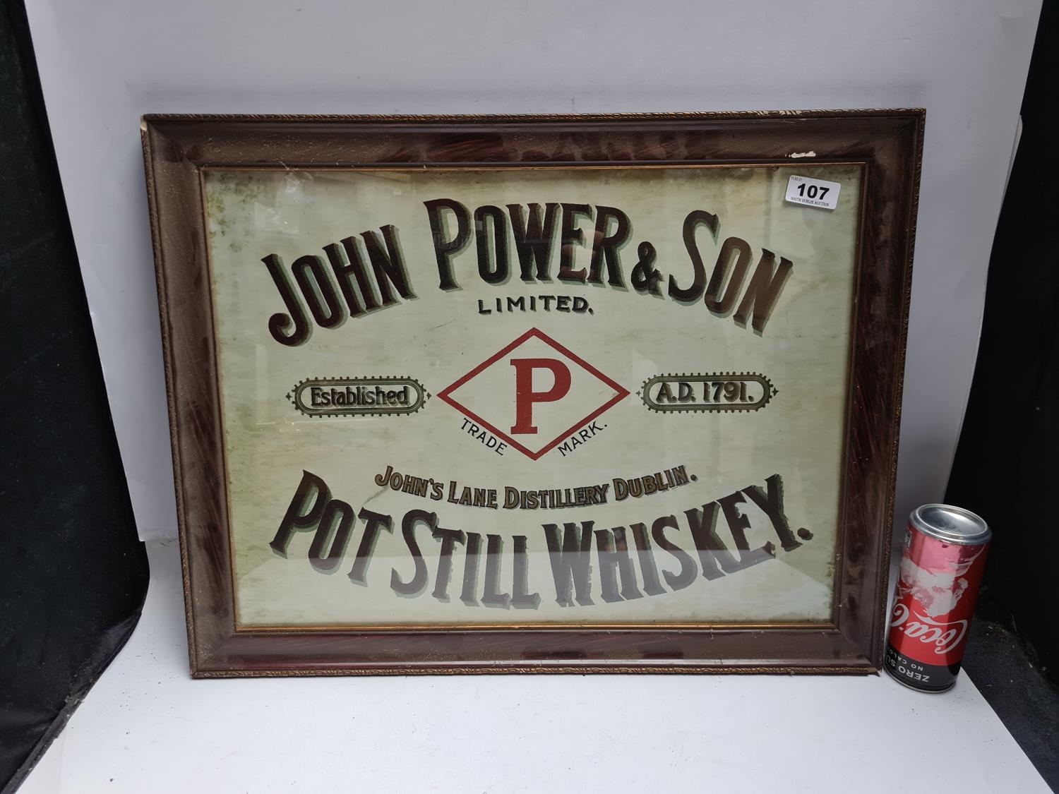 John Power and son, Pot Still Whiskey. Facsimile Whiskey poster with antique frame.