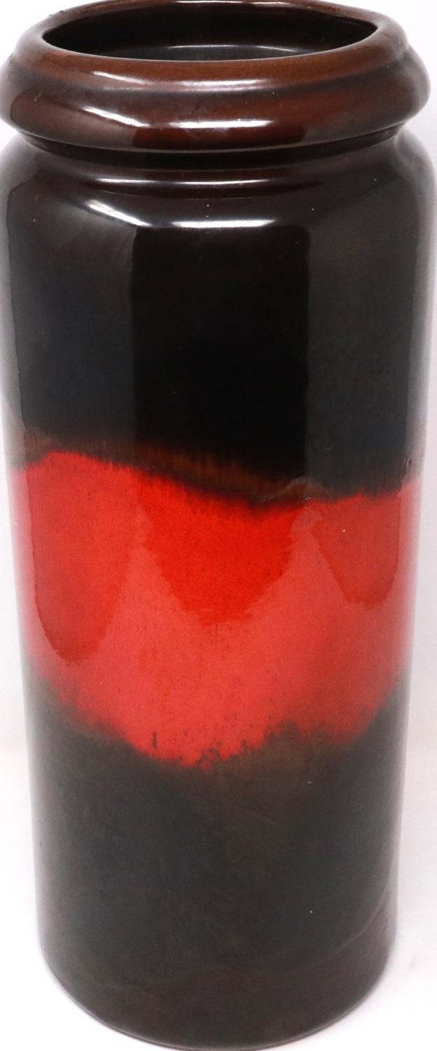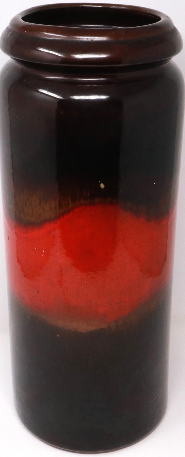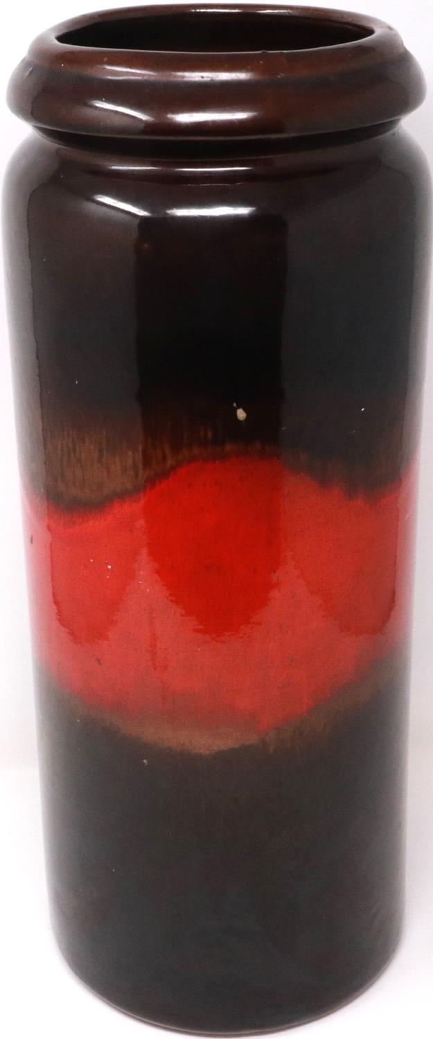 Large West German cylindrical vase, H: 43 cm, no cracks or chips. P&P Group 2 (£18+VAT for the first lot and £3+VAT for subsequent lots)