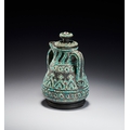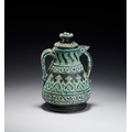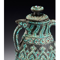 A RARE QAJAR TURQUOISE INSET CARED STONE TEAPOT, PERSIA, 19TH CENTURY