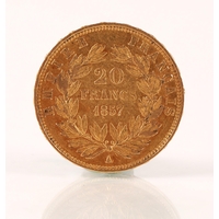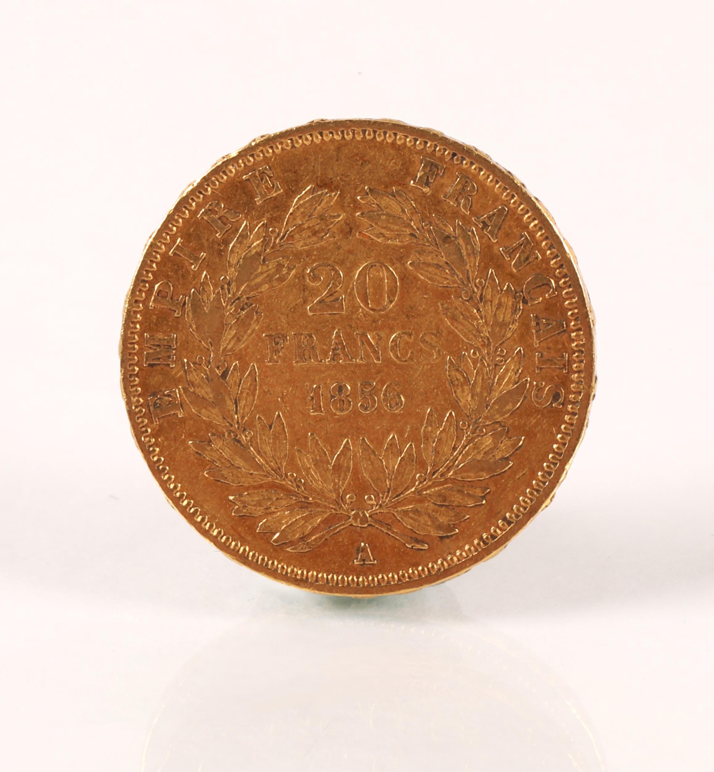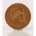 Napoleon III French 20 franc gold coin 1856, weight 6.4 grams