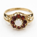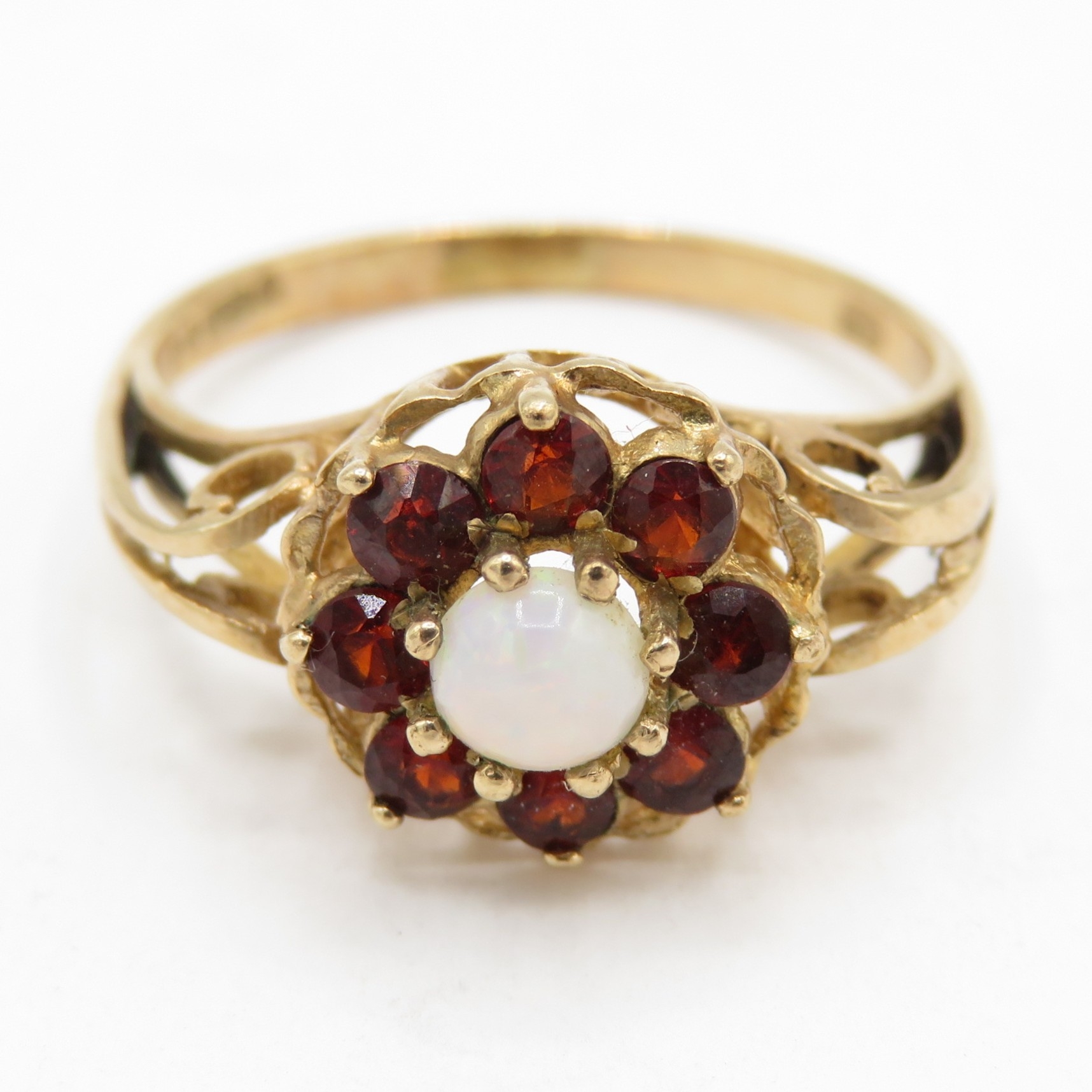 9ct Gold Vintage Opal & Garnet Cluster Ring, Hallmarked London (2.2g) Size N