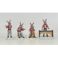 Four Royal Doulton Bunnykins Orchestra to include The Cellist DB393, The Violinist DB390, The Flute Player DB391 and The Marimba Player DB392. (4)
