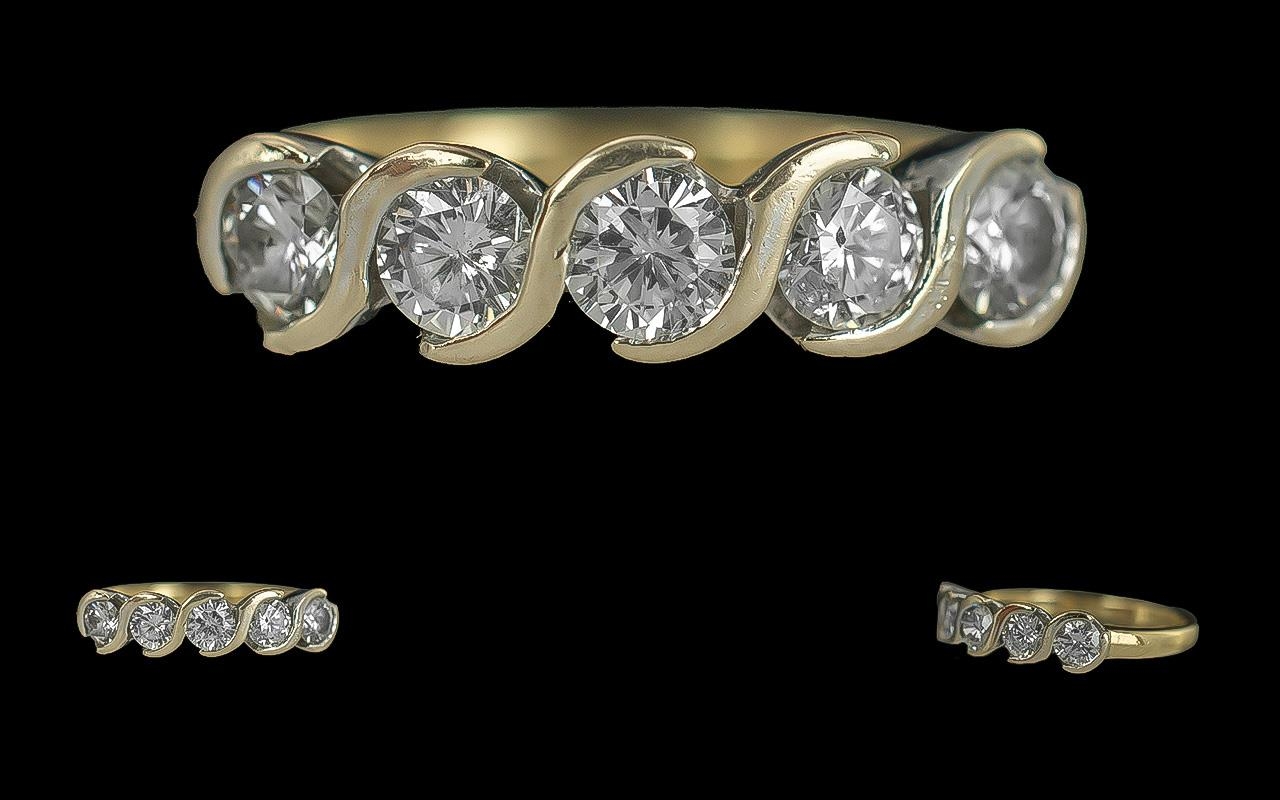 Ladies 18ct Gold 5 Stone Diamond Set Dress Ring. Marked 750, Full Hallmark to Interior of Shank, The Well Matched Diamonds of Excellent Colour / Clarity. Est Diamond Weight 0.50 pts, Ring Size L. Weight 3.2 grams.